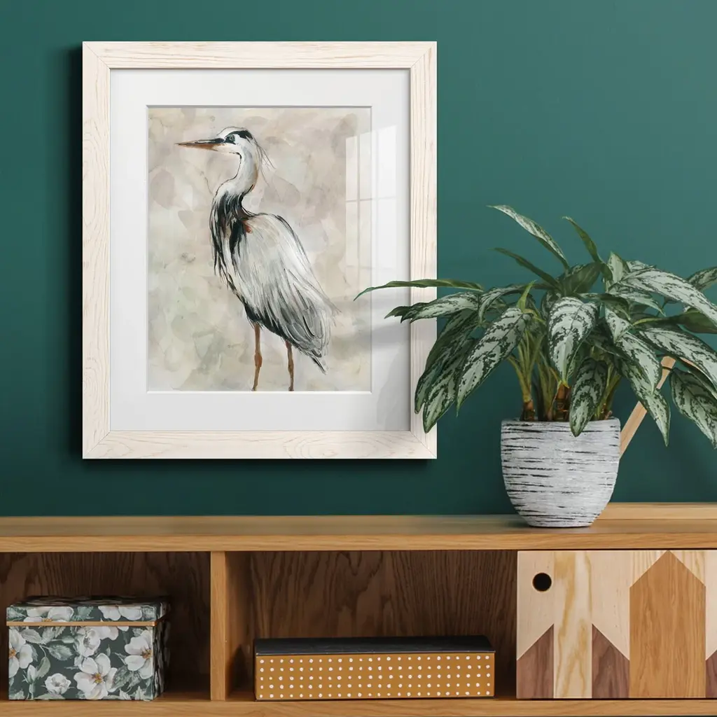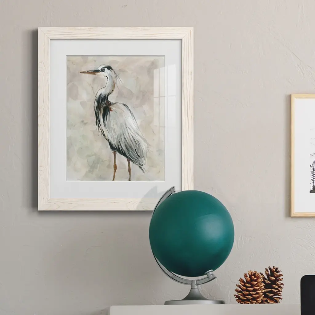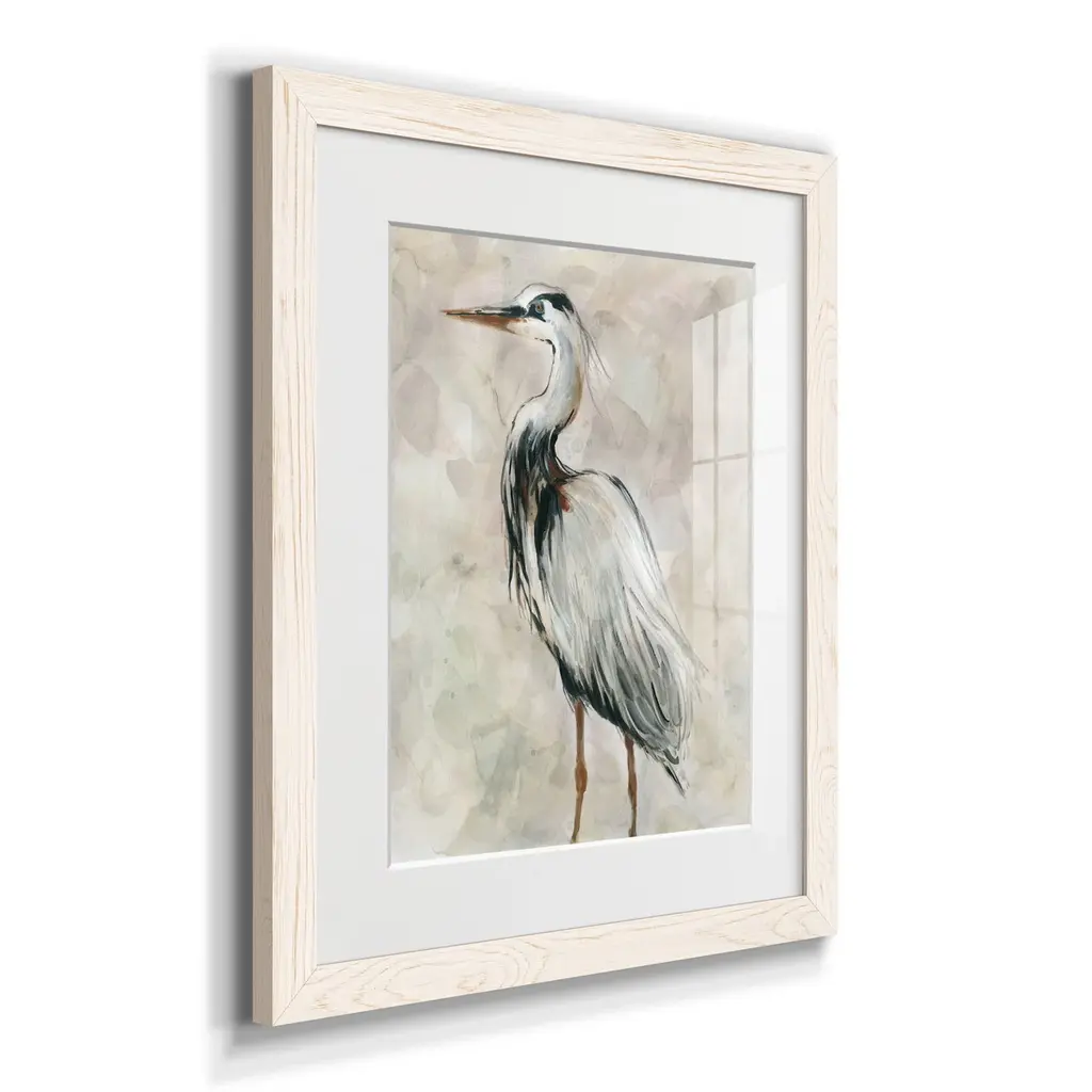 Crane at Dusk II-Premium Framed Print - Ready to Hang Framed in distressed wood and available in an array of sizes and colors Each piece is joined and assembled by hand and comes ready to hang 2 INCH BEVELED MATTE BOARD PLEXIGLASS COVERING READY TO HANG MADE IN THE USA SOLID WOOD FRAME MADE IN USA FADE RESISTANT GICLEE PRINTING on Canvas or Paper