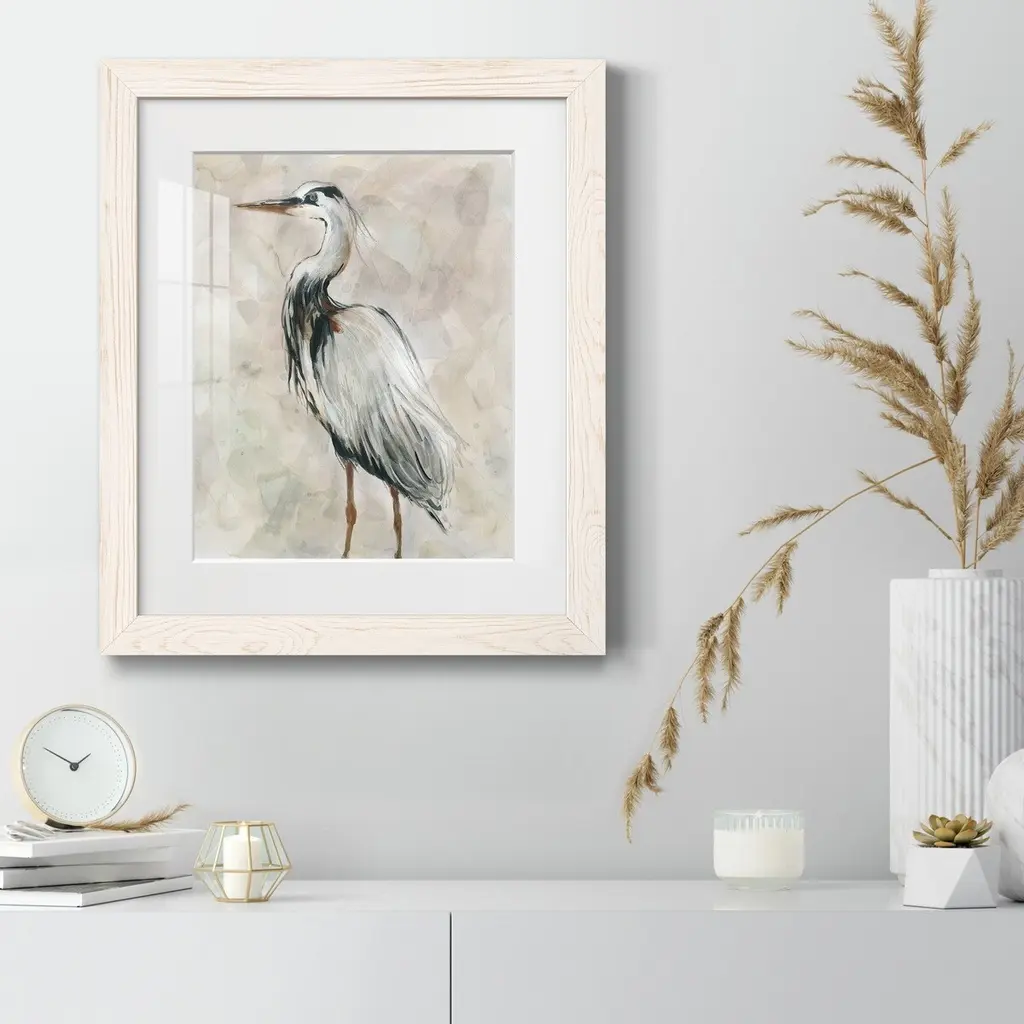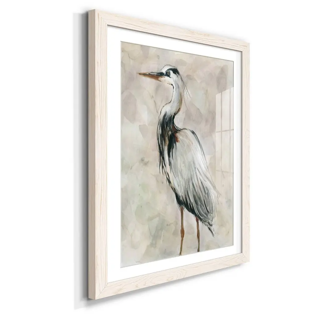 Crane at Dusk II-Premium Framed Print - Ready to Hang Framed in distressed wood and available in an array of sizes and colors Each piece is joined and assembled by hand and comes ready to hang 2 INCH BEVELED MATTE BOARD PLEXIGLASS COVERING READY TO HANG MADE IN THE USA SOLID WOOD FRAME MADE IN USA FADE RESISTANT GICLEE PRINTING on Canvas or Paper