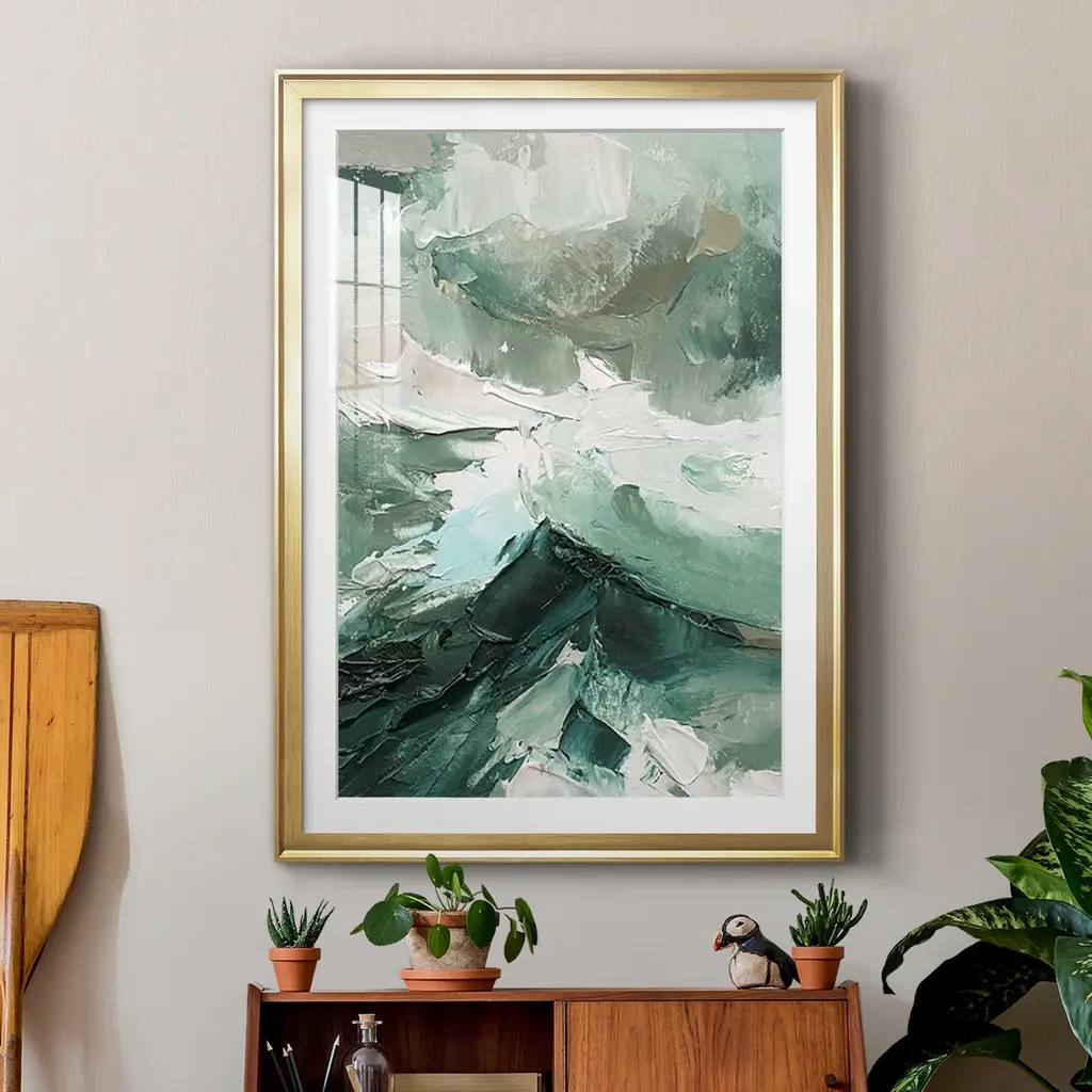 Crashing II Premium Framed Print - Ready to Hang A Premium Framed Print created to last. Framed in distressed wood and available in an array of sizes and colors Featuring a beveled a solid wood stretcher bar, each piece comes ready to hand 4 SIZES AVAILABLE 30.5''X42.5'' - Overall Size 26.5'X36.5'' - Overall Size 22.5''x30.5'' - Overall Size 18.5''x24.5'' - Overall Size Each piece is made to order. Each piece comes with hanging hardware. Made in the USA Ready to Hang Giclee Paper Print Acrylic Glass Beveled Matt Board