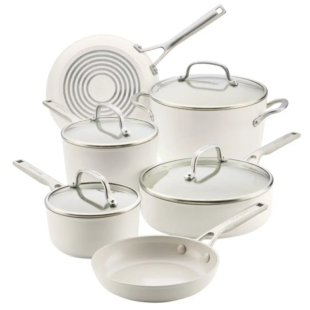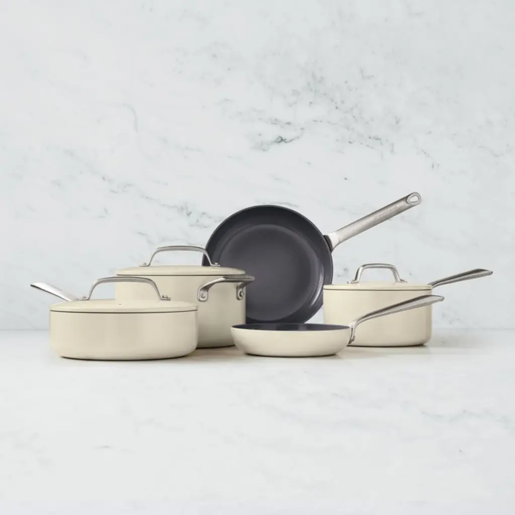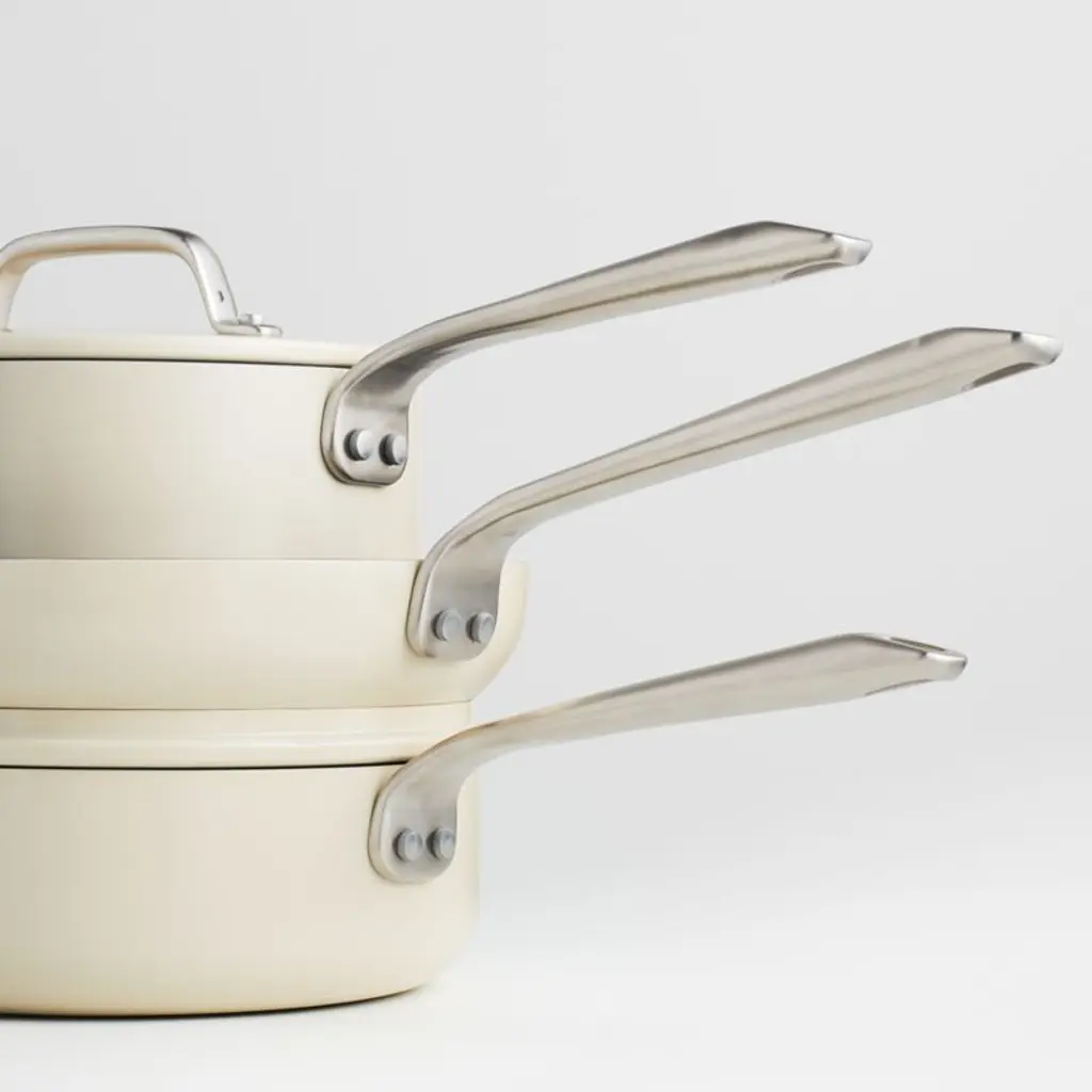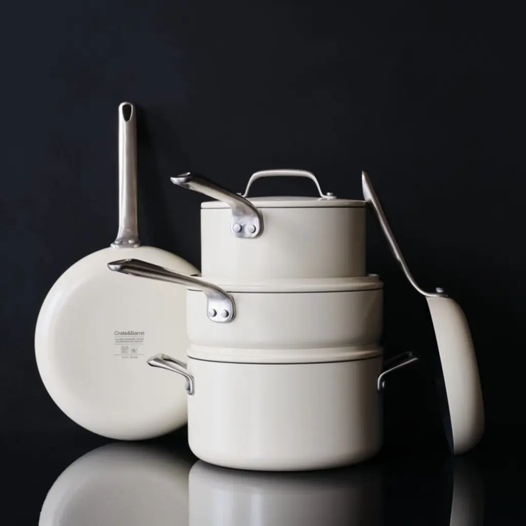 Crate & Barrel Evencook Ceramic Tm Cream Nonstick 8-Piece Cookware Set With Bonus