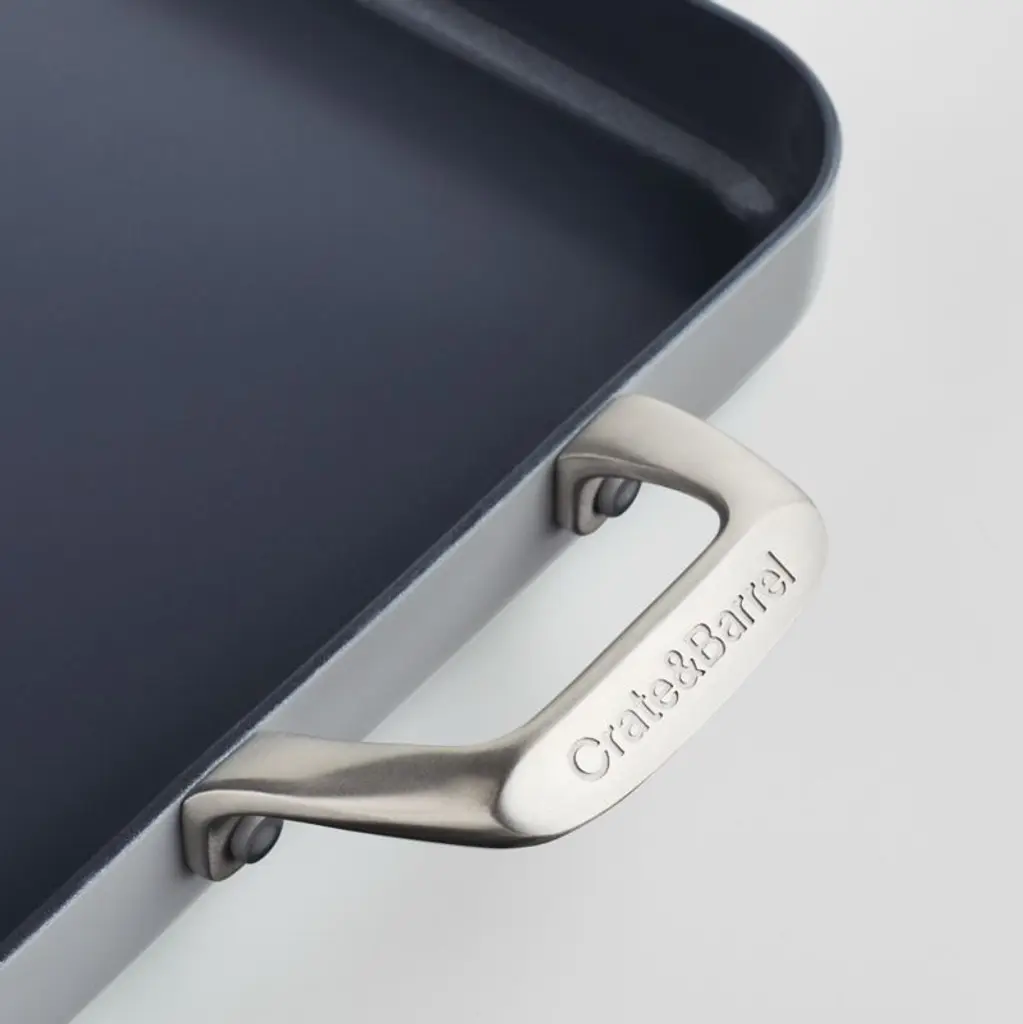 Our exclusive cookware collection has been scrutinized at every stage to bring you the heirloom quality and refined look your kitchen deserves. Designed to span two burners for maximum cooking space, our griddle brings a pop of color to the kitchen with its pale-grey ceramic exterior specially treated to be ultra-durable. The non-stick cooking surface has a diamond-infused ceramic coating that effortlessly releases foods and cleans up easily. Ideal for pancakes, hamburgers and hash, the grey ceramic griddle is oven- and broiler-safe to 500°F.Direct from our design team to your kitchen, the sophisticated assortment in our signature The Kitchen by Crate line combines beautiful simplicity and peerless performance. From initial sketches to rigorous testing, every expertly designed product in this kitchen collection meets our standards, and yours.