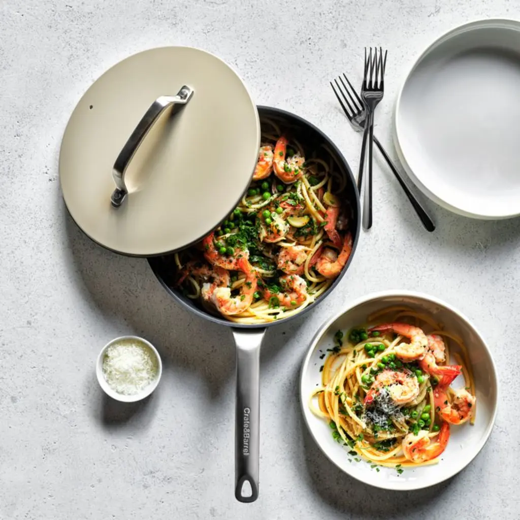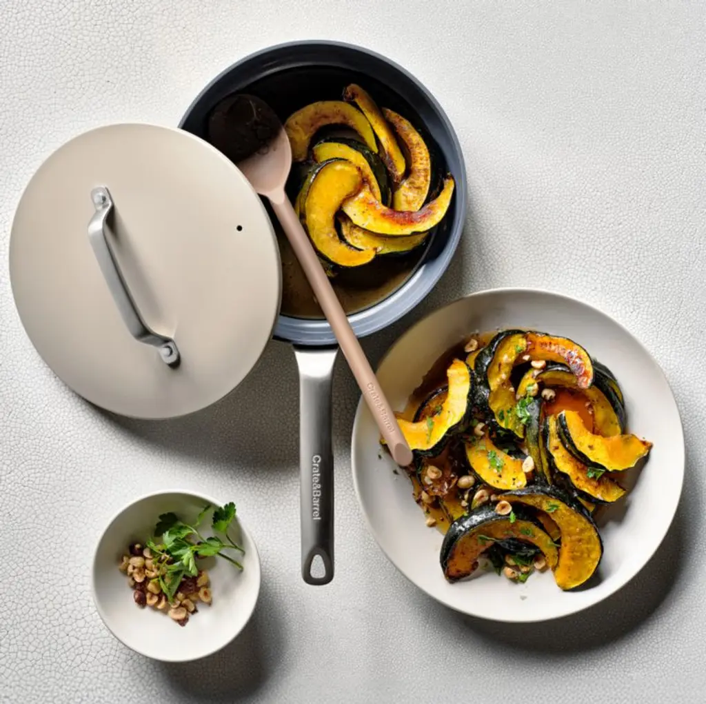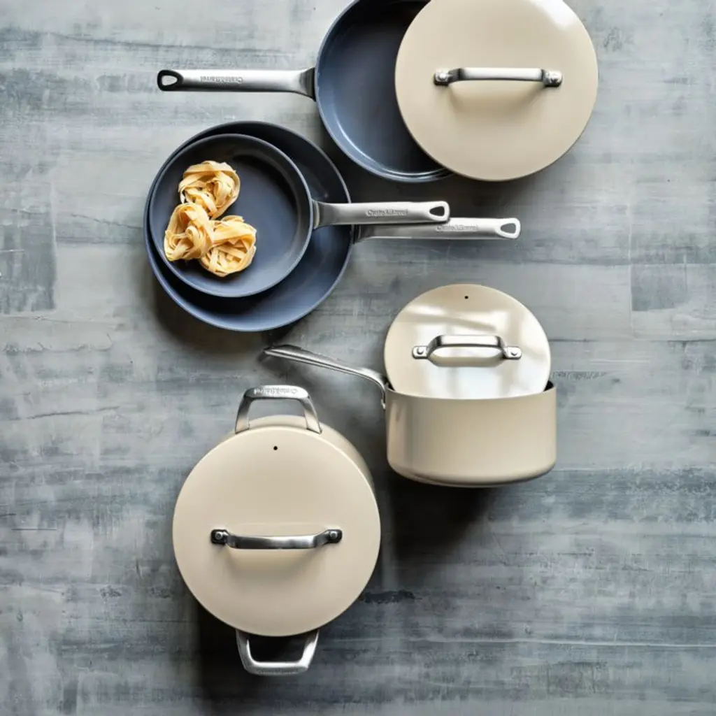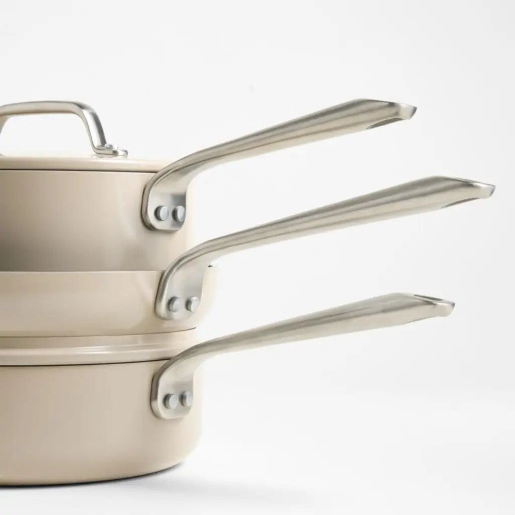 Crate & Barrel Evencook Ceramic Tm Taupe Nonstick 8-Piece Cookware Set With Bonus