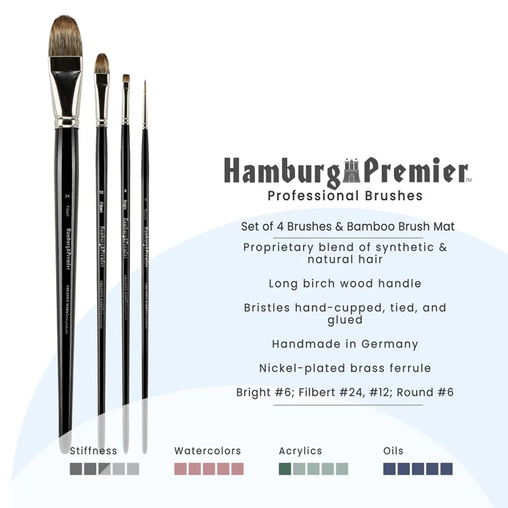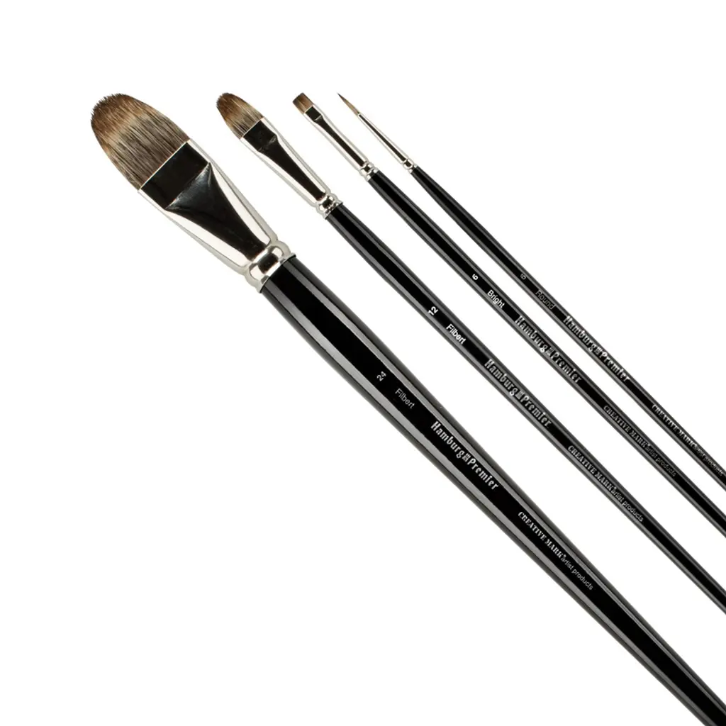 Creative Mark Hamburg Premiere Professional Oil Painting Brushes - Large Asst Set Of 5 Handmade Oil Paint Brushes W/ #24 Filbert - Natural & Synthetic