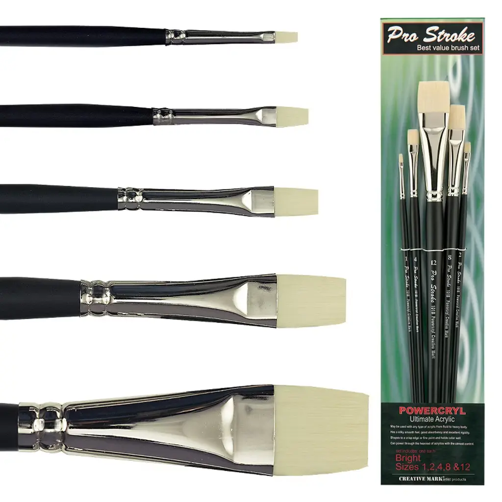Dive deep into the world of acrylic paint with the Pro Stroke Powercryl Ultimate Acrylic Synthetic Paint Brushes and Synthetic Painting Brush Set. These artists paint brushes can be used with all types of acrylics, from fluid to extra-heavy bodied acrylics! The secret is Powercryl’s proprietary combination of 3 separate diameters of synthetic hair filament. The combination gives Powercryl a silky smooth feel, good absorbency, superb structural ability, and excellent rigidity. Bristles shape to a crisp edge or fine point, hold color well, and can power through the heaviest acrylic load with the utmost control. One of the key features of this artist paint brush is its ability to hold a large amount of paint. This feature allows you to move paint with ease on the canvas, making the process of painting smoother and more efficient. This brush is perfect for everything from fluid to extra-heavy bodied acrylics, and from glazing to heavy impasto techniques. The seamless nickel-plated ferrules provide a secure connection between the brush hairs and the matte black handle, ensuring durability and longevity. The wooden handle, with a red dipped end, offers a comfortable grip for long painting sessions. The bristles of the artistic brushes maintain their shape even after extensive use. Whether you're a professional artist, an enthusiastic amateur, or somewhere in between, the Powercryl Artists' paintbrushes are an essential tool for your art kit. This line is not only an appropriate paintbrush for oil painting, but also works well with other mediums. Choose the Creative Mark Powercryl Acrylic Paint Brush for its crisp brush edges & fine points, and enjoy the reliability and consistency it brings to your artistic endeavors. Whether you are an expert in synthetic brushes for painting or working with small paint brushes for acrylic paint, this artist brush set acrylic is a worthy addition to your collection.