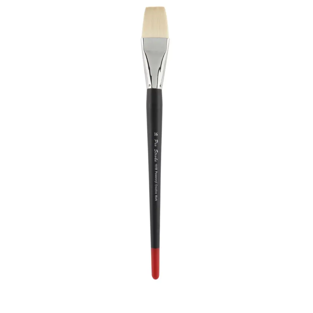 Dive deep into the world of acrylic paint with the Pro Stroke Powercryl Ultimate Acrylic Synthetic Paint Brushes and Synthetic Painting Brush Set. These artists paint brushes can be used with all types of acrylics, from fluid to extra-heavy bodied acrylics! The secret is Powercryl’s proprietary combination of 3 separate diameters of synthetic hair filament. The combination gives Powercryl a silky smooth feel, good absorbency, superb structural ability, and excellent rigidity. Bristles shape to a crisp edge or fine point, hold color well, and can power through the heaviest acrylic load with the utmost control. One of the key features of this artist paint brush is its ability to hold a large amount of paint. This feature allows you to move paint with ease on the canvas, making the process of painting smoother and more efficient. This brush is perfect for everything from fluid to extra-heavy bodied acrylics, and from glazing to heavy impasto techniques. The seamless nickel-plated ferrules provide a secure connection between the brush hairs and the matte black handle, ensuring durability and longevity. The wooden handle, with a red dipped end, offers a comfortable grip for long painting sessions. The bristles of the artistic brushes maintain their shape even after extensive use. Whether you're a professional artist, an enthusiastic amateur, or somewhere in between, the Powercryl Artists' paintbrushes are an essential tool for your art kit. This line is not only an appropriate paintbrush for oil painting, but also works well with other mediums. Choose the Creative Mark Powercryl Acrylic Paint Brush for its crisp brush edges & fine points, and enjoy the reliability and consistency it brings to your artistic endeavors. Whether you are an expert in synthetic brushes for painting or working with small paint brushes for acrylic paint, this artist brush set acrylic is a worthy addition to your collection.