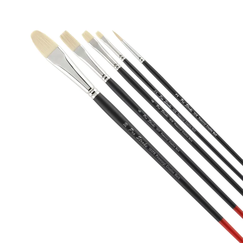 Dive deep into the world of acrylic paint with the Pro Stroke Powercryl Ultimate Acrylic Synthetic Paint Brushes and Synthetic Painting Brush Set. These artists paint brushes can be used with all types of acrylics, from fluid to extra-heavy bodied acrylics! The secret is Powercryl’s proprietary combination of 3 separate diameters of synthetic hair filament. The combination gives Powercryl a silky smooth feel, good absorbency, superb structural ability, and excellent rigidity. Bristles shape to a crisp edge or fine point, hold color well, and can power through the heaviest acrylic load with the utmost control. One of the key features of this artist paint brush is its ability to hold a large amount of paint. This feature allows you to move paint with ease on the canvas, making the process of painting smoother and more efficient. This brush is perfect for everything from fluid to extra-heavy bodied acrylics, and from glazing to heavy impasto techniques. The seamless nickel-plated ferrules provide a secure connection between the brush hairs and the matte black handle, ensuring durability and longevity. The wooden handle, with a red dipped end, offers a comfortable grip for long painting sessions. The bristles of the artistic brushes maintain their shape even after extensive use. Whether you're a professional artist, an enthusiastic amateur, or somewhere in between, the Powercryl Artists' paintbrushes are an essential tool for your art kit. This line is not only an appropriate paintbrush for oil painting, but also works well with other mediums. Choose the Creative Mark Powercryl Acrylic Paint Brush for its crisp brush edges & fine points, and enjoy the reliability and consistency it brings to your artistic endeavors. Whether you are an expert in synthetic brushes for painting or working with small paint brushes for acrylic paint, this artist brush set acrylic is a worthy addition to your collection.
