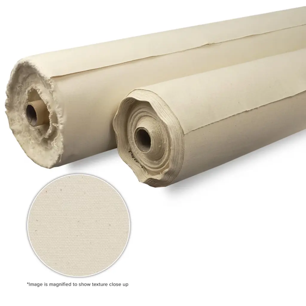 Introducing the Creative Mark Unprimed Cotton Duck Deluxe Canvas Roll, a staple for any artist seeking superior canvas cloth for painting. This professional-grade rolled canvas is ideal for those who require a raw, unstretched canvas for painting large masterpieces or precise details. Each roll of canvas spans a generous 30 yards, offering an extensive canvas roll for painting without interruption. This roll of canvas is crafted from premium cotton duck fabric, renowned for its durability and versatility. Available in a range of ounce weights, the Creative Mark canvas roll for painting large includes options tailored to different artistic needs. The single fill 7 oz unprimed weight features economy cotton sheeting with a uniform medium texture, perfect for various painting styles. For those seeking a smoother finish, the 10 oz army duck canvas fabric is ideal for portraits and realism, providing an impeccable base for fine details. For artists requiring more robust options, the #8 (18 oz), #10 (15 oz), and #12 (12 oz) unprimed weights are available. These options are double filled, presenting a uniform canvas surface that supports diverse techniques and mediums. Whether you're working on a raw canvas for painting or an unstretched canvas, these options provide the ideal foundation. The raw canvas material fabric is unprimed, offering the artist complete control over the preparation and priming process, thus enhancing the final artwork. Explore the unmatched versatility of Creative Mark's canvas rolls for painting and discover why rolls of canvas is a preferred choice for professionals looking to save on large canvas creation. Embrace the possibilities with this cotton duck canvas, whether you seek a loose canvas roll for painting or a structured canvas rolled to perfection. With Creative Mark's duck cloth fabric by the yard, create with confidence and let your artistry shine on this canvas yardage.