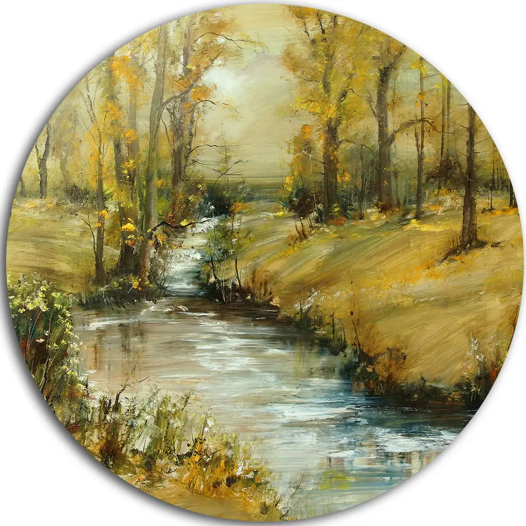Creek And Woods Oil, Landscape Disc Metal Wall Art, 23"