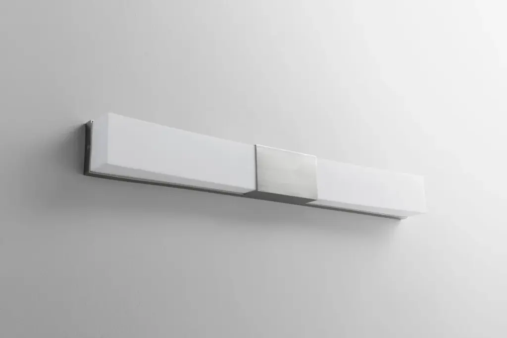 This 2-light bathroom vanity light from Oxygen is a part of the Crescent collection and comes in a satin nickel finish. It measures 31" wide x 4" high. Uses an integrated LED. Damp Rated. Can be used in humid environments like bathrooms or covered outdoor areas. This light requires 2 , 12W Watt Bulbs (Not Included) UL Certified.