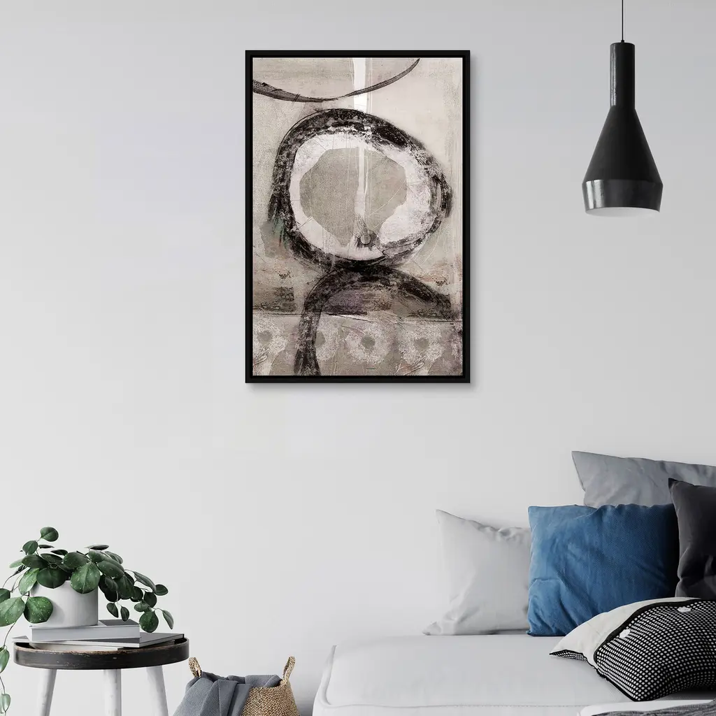 Minimalist black and white organic circles appear to be suspended in a pool of light charcoal gray in this wall art by Nikki Chu. With a design philosophy grounded in architectural aesthetics and global influences, the famed designer creates affordable luxury pieces for modern homes. With its textural technique and formal composition, it brings a sophisticated, modern look to home decor.