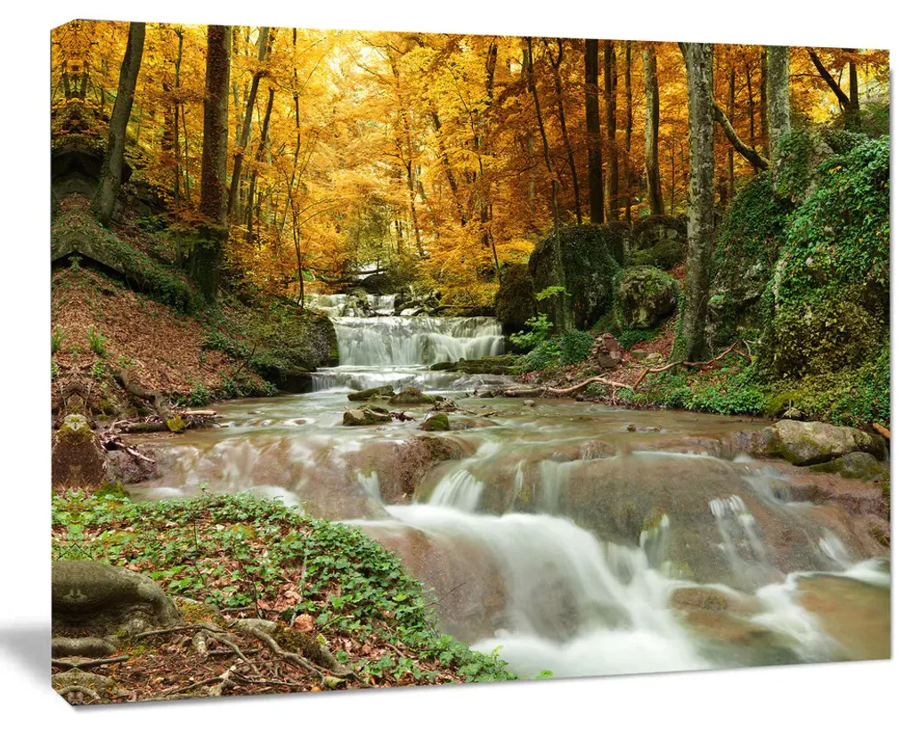 The Crimea Waterfall in the Fall canvas art print is sure to make an impression on anyone who sees it. This artwork is gallery wrapped around a 1-inch solid wood frame and arrives carefully packaged and entirely ready to hang on the wall. Design Art only uses the highest resolution and pigments to ensure a crisp colorful print that is never faded or pixelated. This artwork is sure to be a conversation starter in any home or office.