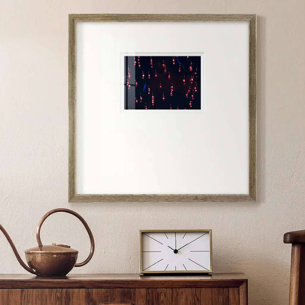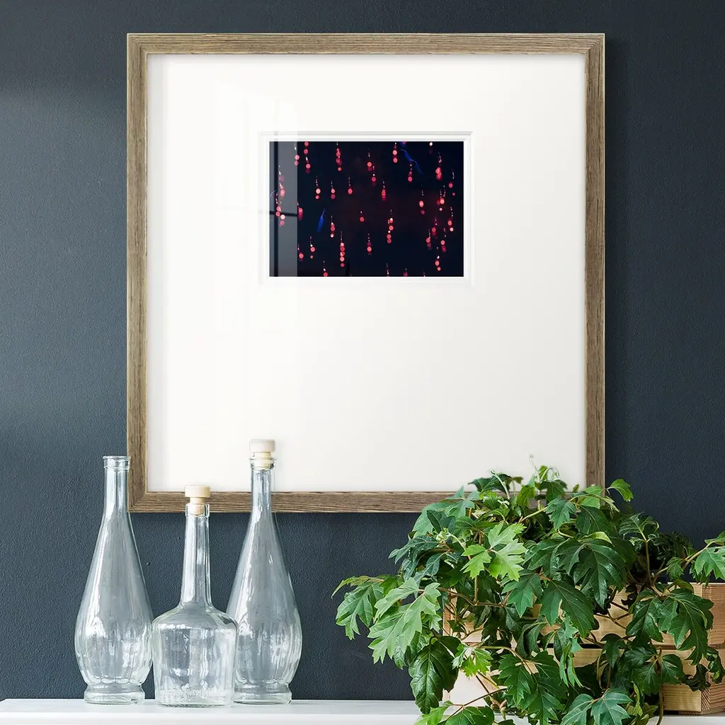 Crimson ConstellationPremium Framed Print A framed cold pressed paper print featuring superior double matting and quality frame. 2 SIZES AVAILABLE 16''X16''' - Overall Size 20''X20''' - Overall Size Each piece is made to order. Each piece comes with hanging hardware. Made in the USA Ready to Hang Giclee Paper Print Plexiglass Beveled Matt Board Double Matte Board