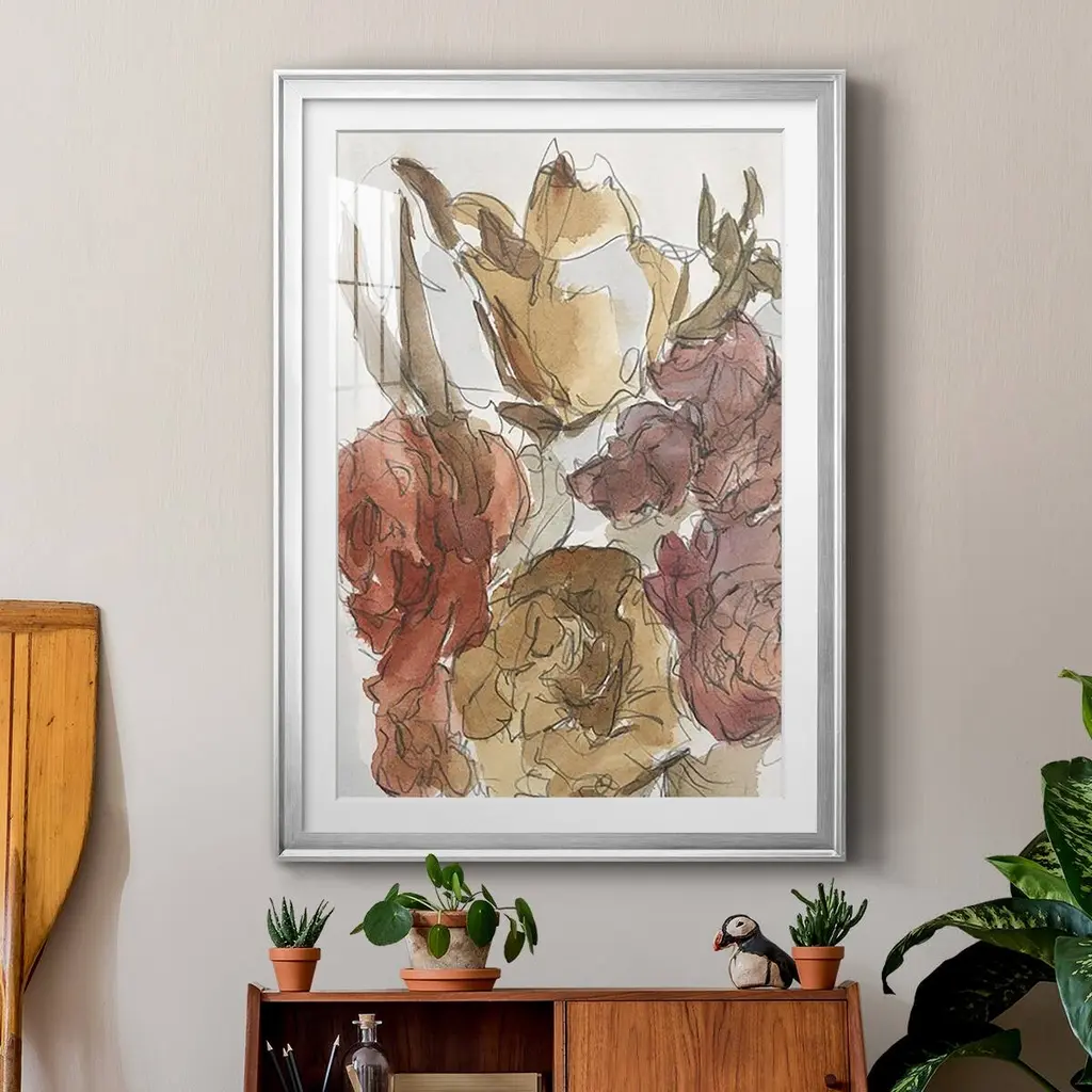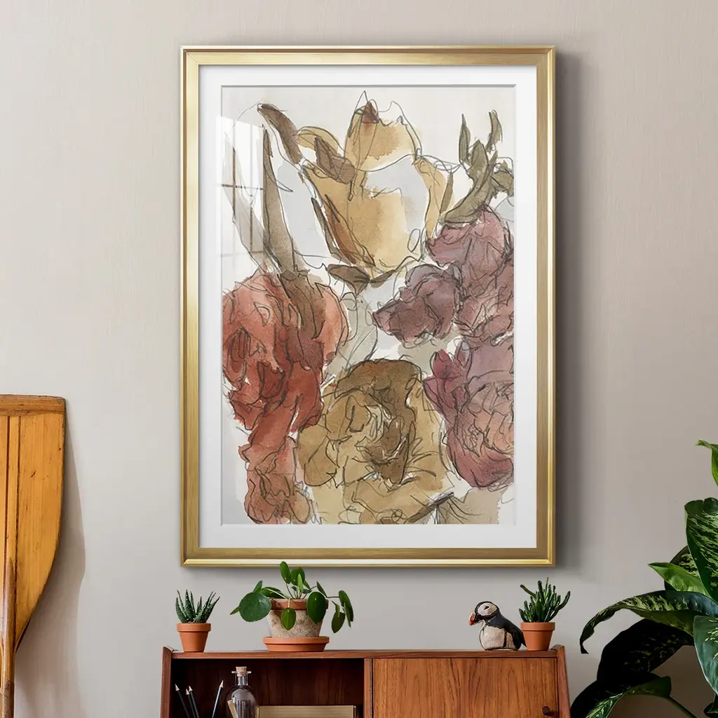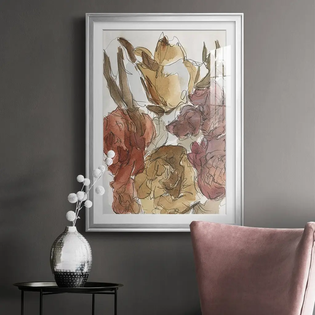Cropped Floral Arrangement I Premium Framed Print - Ready to Hang A Premium Framed Print created to last. Framed in distressed wood and available in an array of sizes and colors Featuring a beveled a solid wood stretcher bar, each piece comes ready to hand 4 SIZES AVAILABLE 30.5''X42.5'' - Overall Size 26.5'X36.5'' - Overall Size 22.5''x30.5'' - Overall Size 18.5''x24.5'' - Overall Size Each piece is made to order. Each piece comes with hanging hardware. Made in the USA Ready to Hang Giclee Paper Print Acrylic Glass Beveled Matt Board