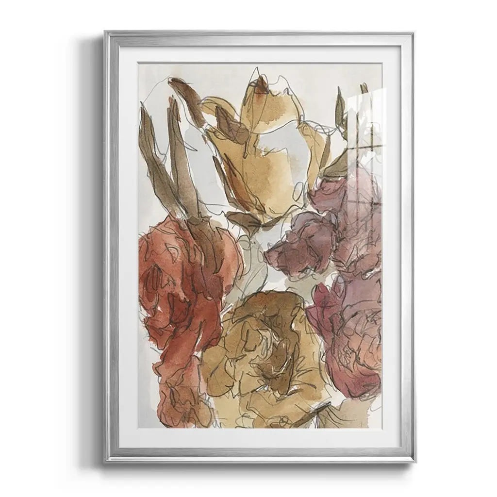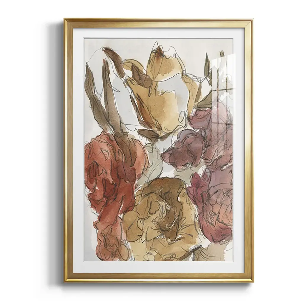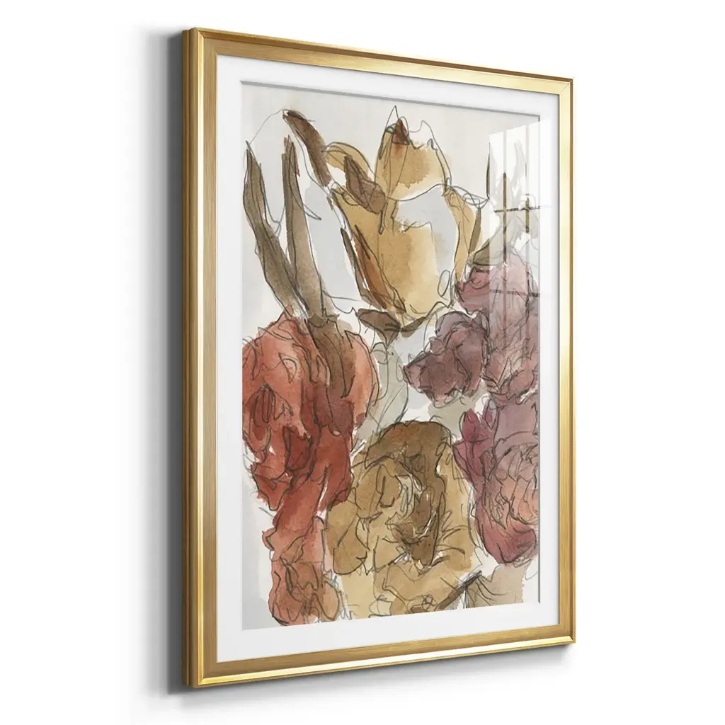Cropped Floral Arrangement I Premium Framed Print - Ready to Hang A Premium Framed Print created to last. Framed in distressed wood and available in an array of sizes and colors Featuring a beveled a solid wood stretcher bar, each piece comes ready to hand 4 SIZES AVAILABLE 30.5''X42.5'' - Overall Size 26.5'X36.5'' - Overall Size 22.5''x30.5'' - Overall Size 18.5''x24.5'' - Overall Size Each piece is made to order. Each piece comes with hanging hardware. Made in the USA Ready to Hang Giclee Paper Print Acrylic Glass Beveled Matt Board