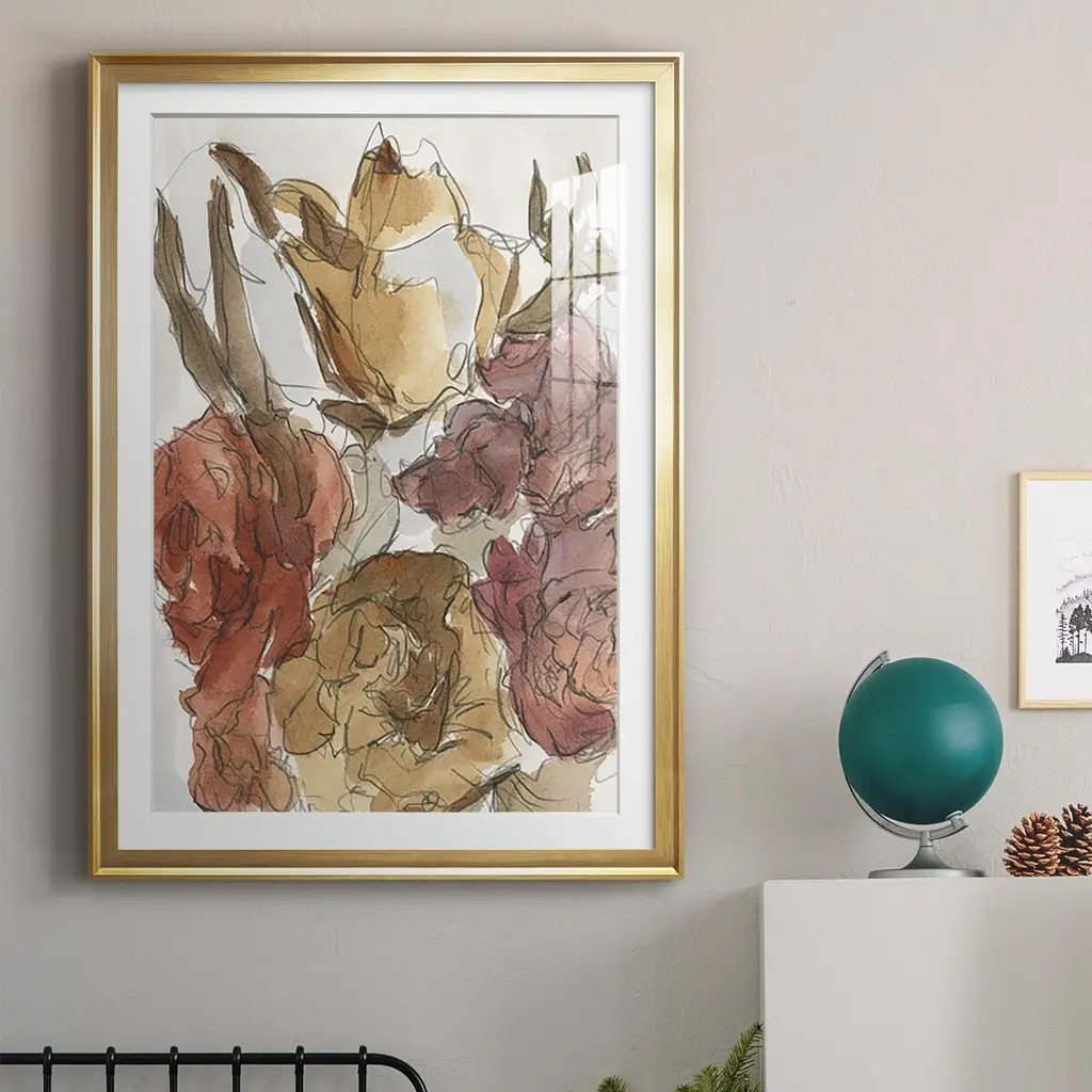 Cropped Floral Arrangement I Premium Framed Print - Ready to Hang A Premium Framed Print created to last. Framed in distressed wood and available in an array of sizes and colors Featuring a beveled a solid wood stretcher bar, each piece comes ready to hand 4 SIZES AVAILABLE 30.5''X42.5'' - Overall Size 26.5'X36.5'' - Overall Size 22.5''x30.5'' - Overall Size 18.5''x24.5'' - Overall Size Each piece is made to order. Each piece comes with hanging hardware. Made in the USA Ready to Hang Giclee Paper Print Acrylic Glass Beveled Matt Board