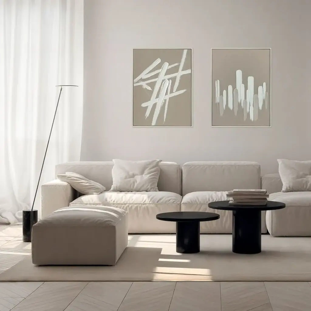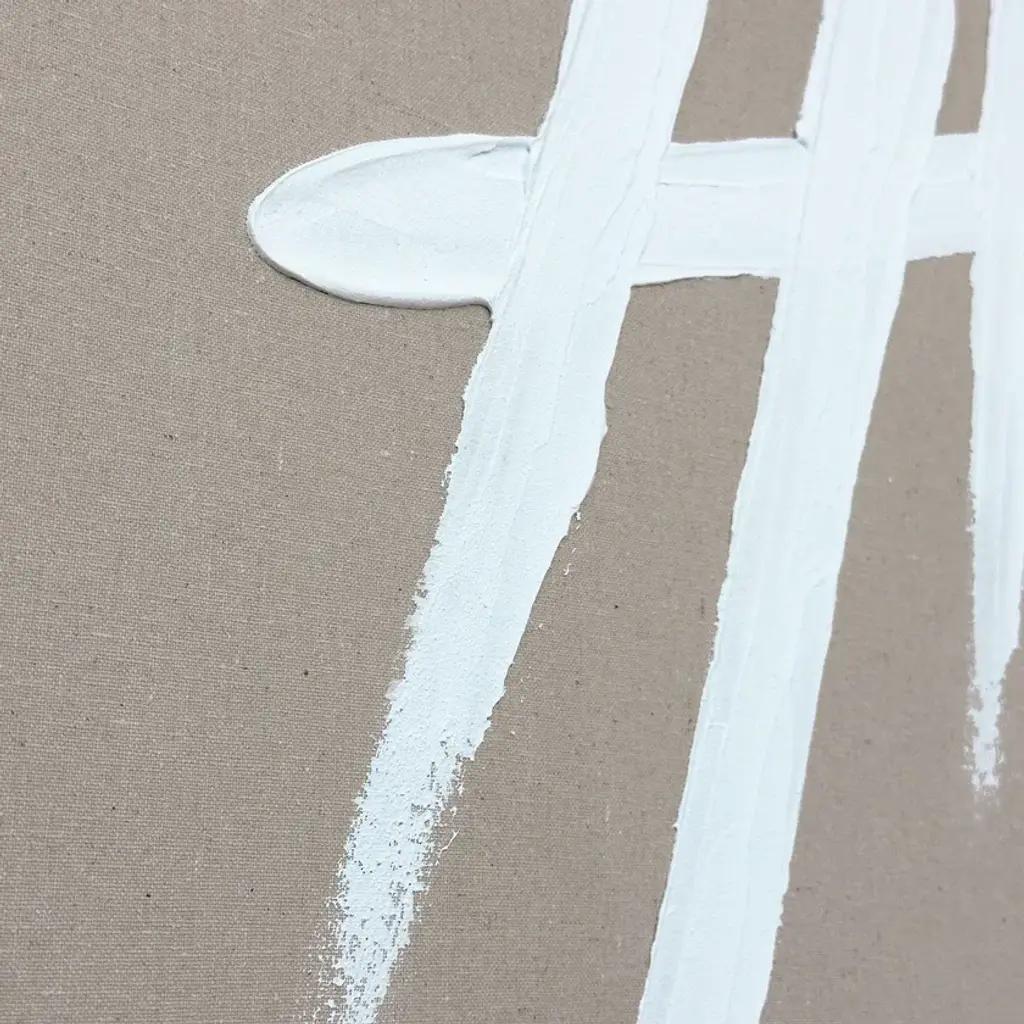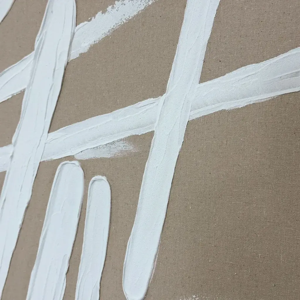 Cross is a hand-painted abstract painting on canvas. Trajectories of textural white paint cross against a neutral background of raw texture, resulting in an incisive representation of artistic expressiveness. With a wooden inner frame and wooden frame, the painting is ready to hang.The AGAVE Quadri collection represents the excellence of contemporary art applied to the world of interior design. Each piece, hand-painted with artisanal techniques by the finest artists in collaboration with the Italian company AGAVE, combines abstract, natural, and figurative elements to create unique and refined works. These paintings transform spaces into environments of great elegance and character, perfect for interior design projects that require a distinctive and artistic touch.