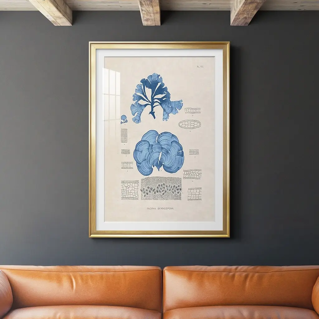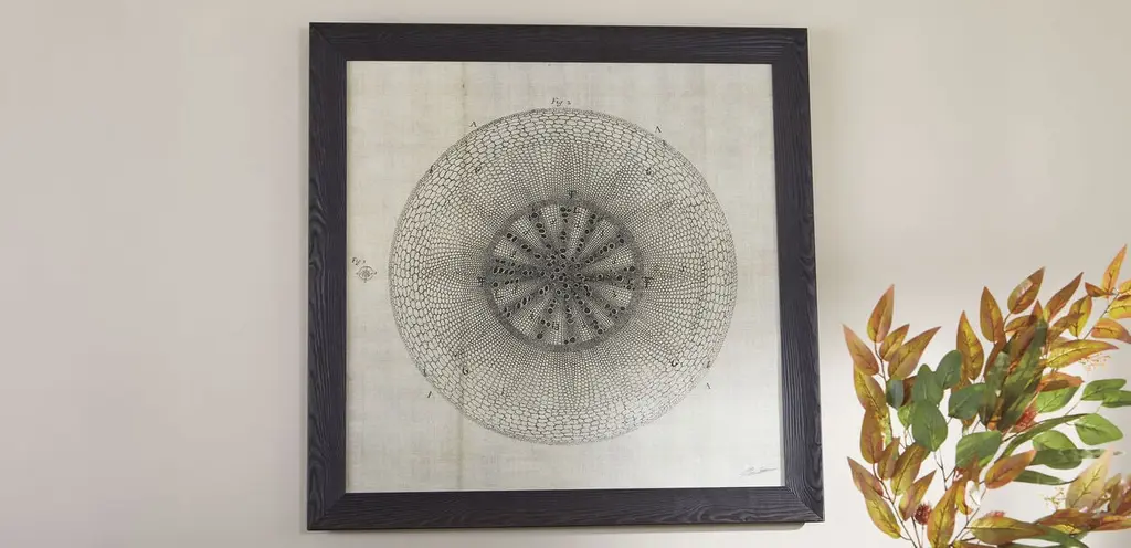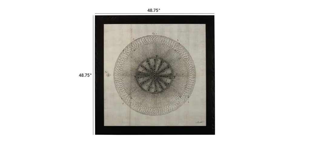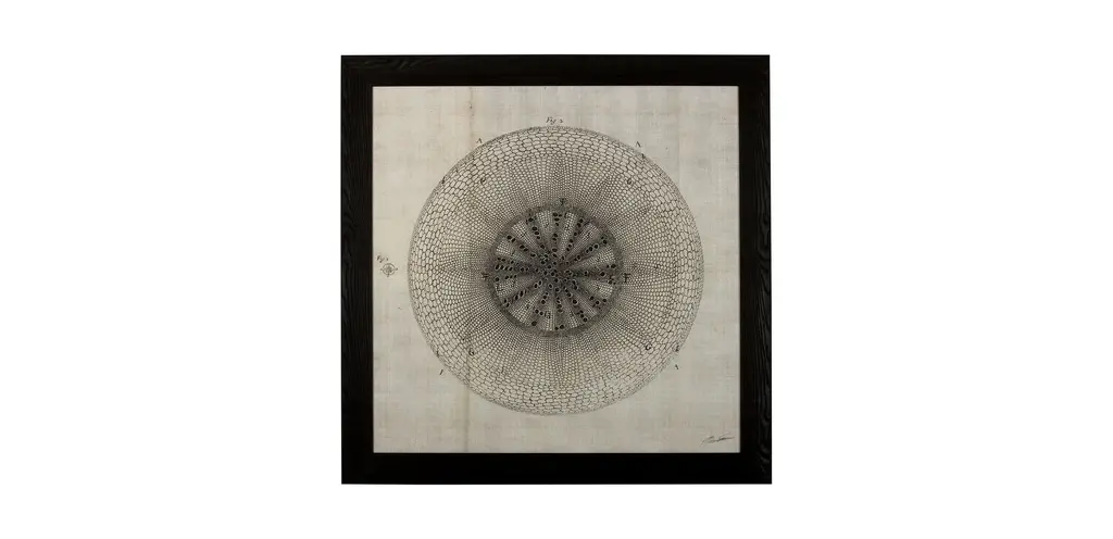 A remarkable study of nature up close. These sepia toned giclées are based on vintage illustrations of crosscut tree branches. The grand size of these prints wonderfully showcases the exquisite linework and paper weave in captivating detail. A simple matte black frame with wood grain details complements the works textural character.