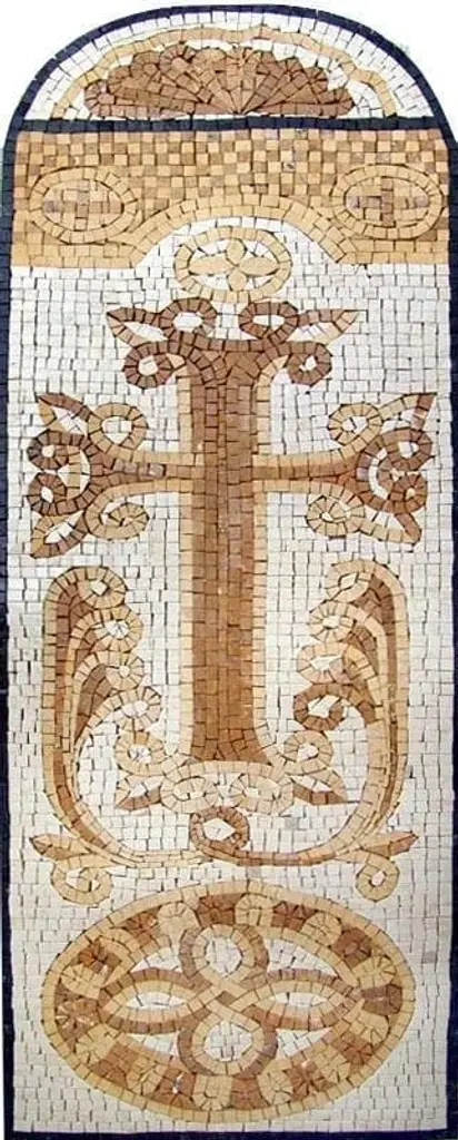 Introducing the Cross Marble Art Mosaic, a stunning handmade religious mural that beautifully captures the essence of faith and spirituality. This exquisite piece showcases a striking sienna and ochre cross set against a rich black background, symbolizing the profound significance of the wounds of Jesus Christ. Each tile is meticulously crafted, highlighting the dedication and artistry involved in creating this remarkable work of art.The Cross Marble Art Mosaic is not just a decorative element; it is a powerful representation of Christian beliefs, making it a perfect addition to any home, church, or sacred space. As part of our exclusive religious mosaic collection, this artwork serves as a reminder of faith, love, and sacrifice, inviting contemplation and reflection.Crafted with care, the Cross Marble Art Mosaic combines traditional techniques with modern aesthetic sensibilities, resulting in a timeless piece that fits seamlessly into various interior styles. Whether you're looking to enhance your spiritual sanctuary or searching for a meaningful gift, this mosaic stands out with its vibrant colors and symbolic representation.Bring a piece of history and spirituality into your living space. The Cross Marble Art Mosaic is designed to inspire and uplift, making it an ideal choice for anyone seeking to deepen their connection to their faith while enjoying the beauty of handcrafted artistry. Embrace the significance of this unique artwork and let it serve as a focal point in your decor, sparking conversations and inviting admiration from all who see it. Transform your space with the Cross Marble Art Mosaic and celebrate the enduring power of Christian art.