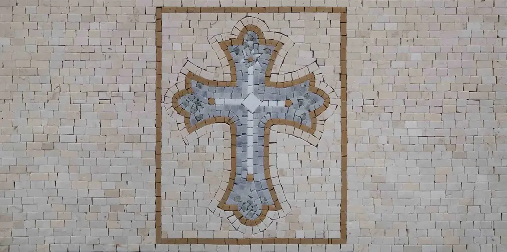 Introducing the Cross Marble Mosaic, a stunning piece of artistry that combines elegance and spiritual significance in one exquisite design. This fully handmade mosaic is crafted from high-quality marble, ensuring durability and beauty that will stand the test of time. Each Cross Marble Mosaic is meticulously created by skilled artisans who pour their heart and soul into every piece, resulting in a unique work of art that reflects both creativity and devotion.Ideal for wall decoration, this beautiful Cross Marble Mosaic is perfect for adding a touch of sophistication to any space while also signifying your faith and connection to Christianity. Imagine this striking mosaic adorning your living room, hallway, or even a dedicated prayer area, serving as a daily reminder of your beliefs and values. Its intricate design and rich color variations will complement a variety of interior styles, making it a versatile addition to your home decor.Not only does the Cross Marble Mosaic elevate your decor, but it also makes for a thoughtful gift for weddings, baptisms, or housewarmings. Share the beauty of faith with your loved ones by gifting them this meaningful piece that they can cherish for years to come. Embrace the elegance and symbolism of the Cross Marble Mosaic. Order yours today and transform your living space into a sanctuary of faith and artistry.