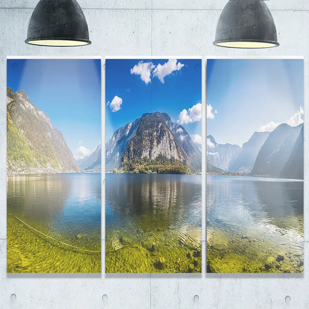 "Crystal Clear Mountain Lake In Alps" Metal Wall Art, 3 Panels, 36"x28"