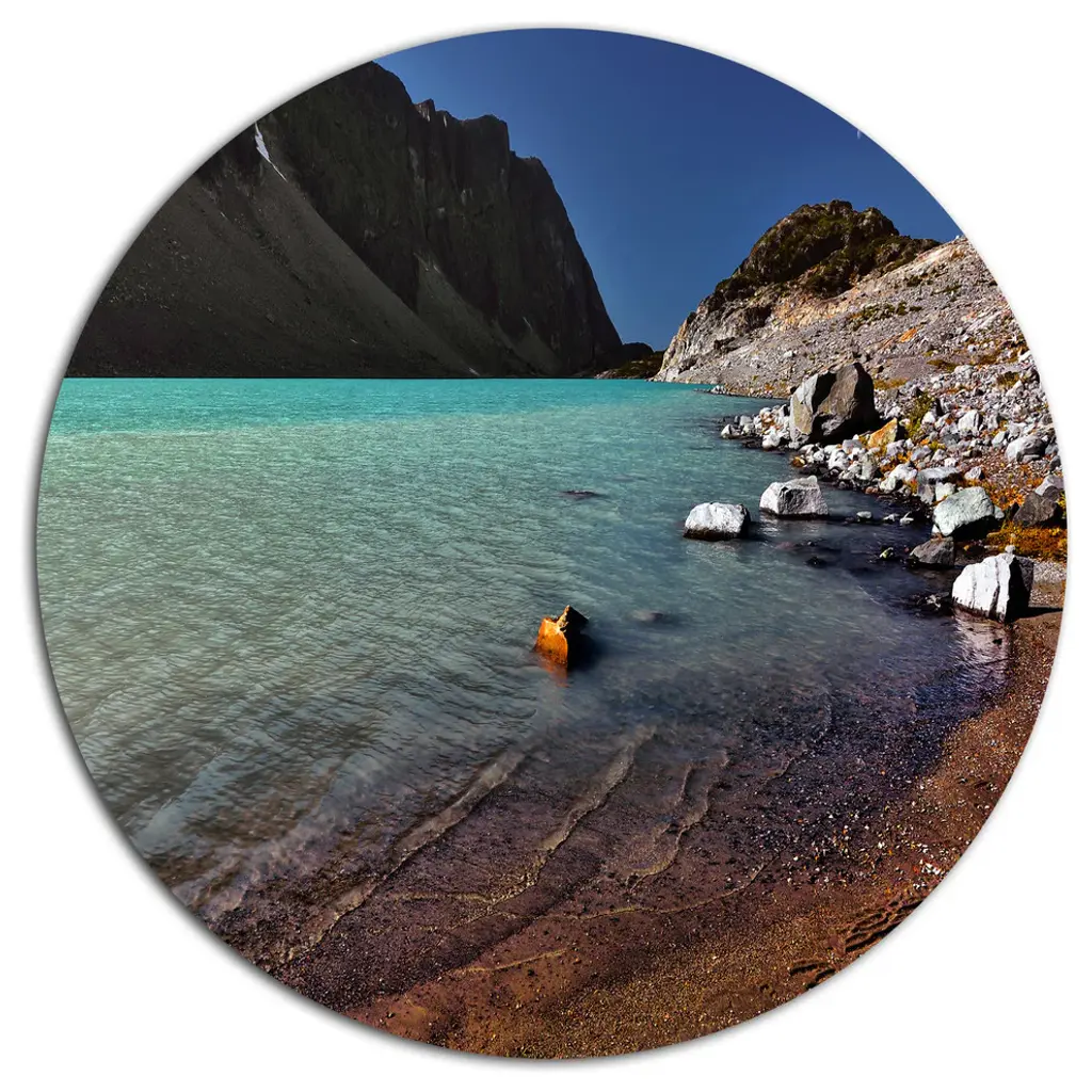 Crystal Clear Mountain Lake, Landscape Disc Metal Artwork, 23"