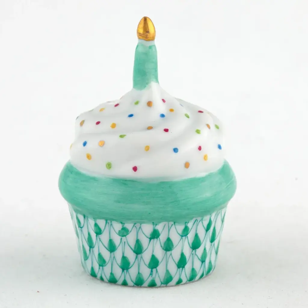 Cupcake With Candle Green 2.25 In H X 1.5 In D