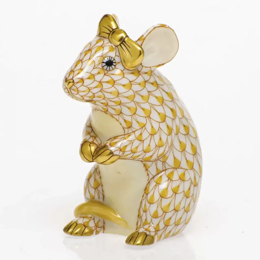 Endearing animals meek and bold, large and small, demure and majestic eagerly await the chance to melt your heart and warm your home. Each is brought to life by the skilled hands of artisans crafting and painting these charming porcelain creatures. The famous fishnet décor adorning many of the animals took form in 1858 when a Herend painter became inspired by a fishscale design he saw on a Chinese porcelain plate and painted a similar pattern onto a rooster figurine to imitate feathers. The rest is history, with the fishnet design now a Herend signature prized worldwide. Now the biggest porcelain manufactory in Europe, Herend was founded in 1826 to produce earthenware in the small Hungarian village for which it was named. At the time, Hungary was flooded with low-cost pottery, but in 1839, Mor Fischer became the Manufactory’s new owner and he decided to focus on producing dinnerware replacement pieces for Europe’s royal families to complement their valuable porcelain patterns from Germany and the Far East. As his client base grew, Fischer commissioned his artists to begin designing dinnerware patterns of their own. Queen Victoria’s 1851 purchase of a large set for Windsor Castle was a milestone, setting the stage for aristocrats throughout Europe to clamor for Herend in their estates. In the 1850s, Herend added meticulously-crafted figurines to its creations. Herend’s trademark fishnet pattern, which is widely recognized and prized as Herend’s signature design, started in 1858 when an artist who was intrigued with a Chinese plate’s fish scale design painted it onto a rooster figurine to imitate feathers.