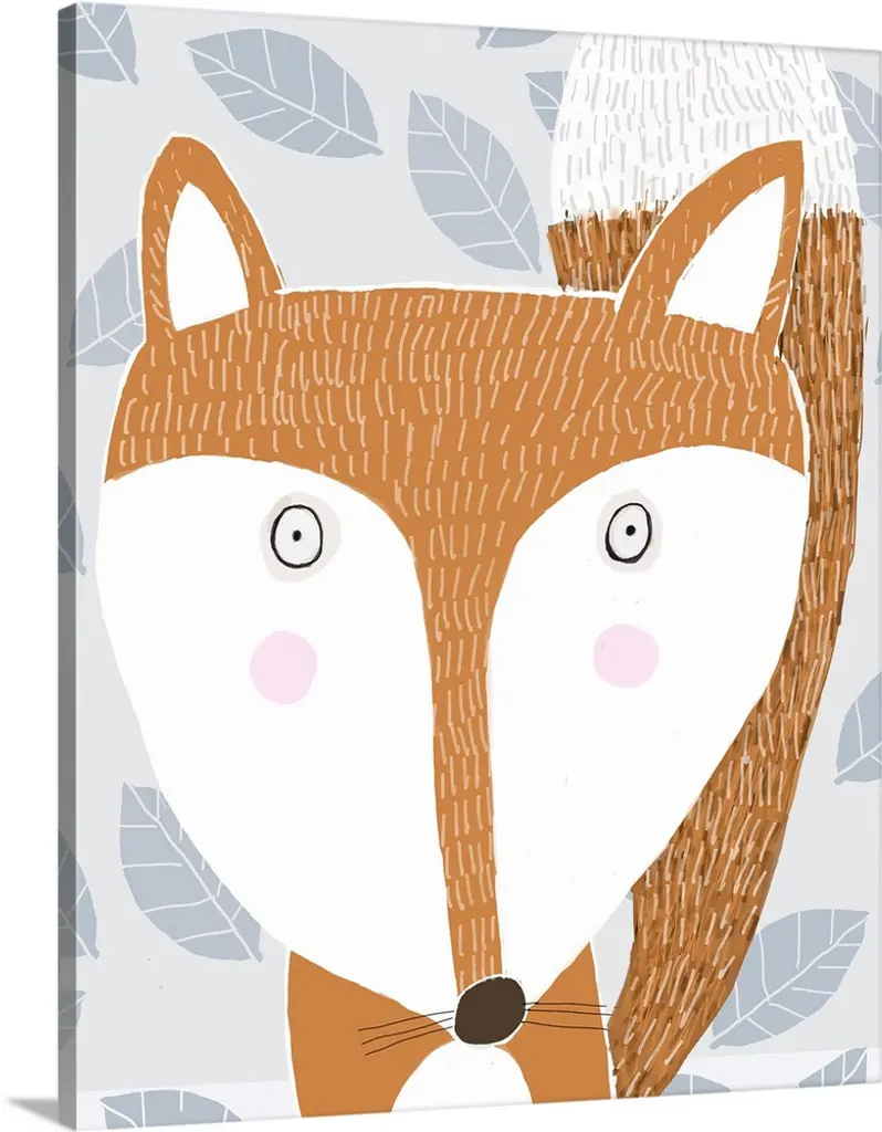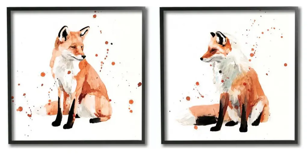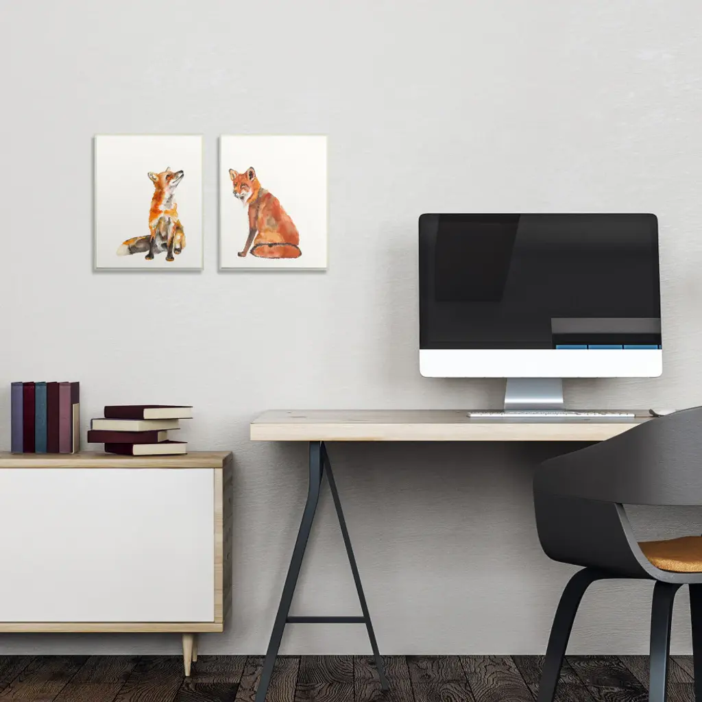 Curious Fox Orange Watercolor Animal Painting 2-Piece Set, 10"x15"