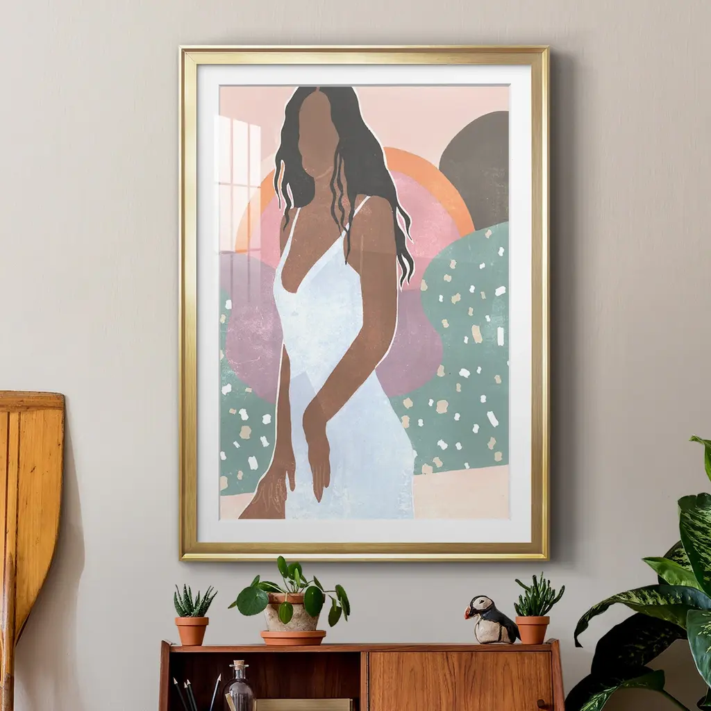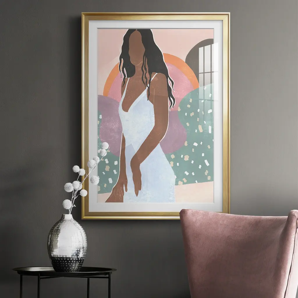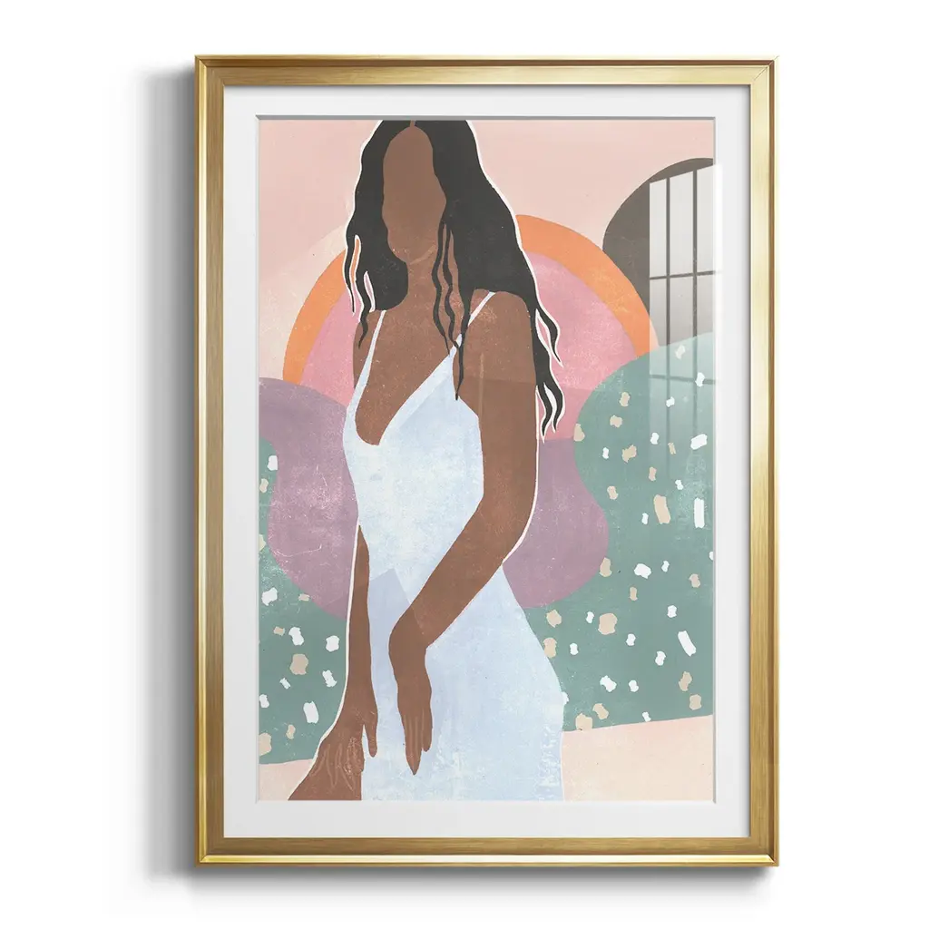 Curly Lady I Premium Framed Print - Ready to Hang A Premium Framed Print created to last. Framed in distressed wood and available in an array of sizes and colors Featuring a beveled a solid wood stretcher bar, each piece comes ready to hand 4 SIZES AVAILABLE 30.5''X42.5'' - Overall Size 26.5'X36.5'' - Overall Size 22.5''x30.5'' - Overall Size 18.5''x24.5'' - Overall Size Each piece is made to order. Each piece comes with hanging hardware. Made in the USA Ready to Hang Giclee Paper Print Acrylic Glass Beveled Matt Board