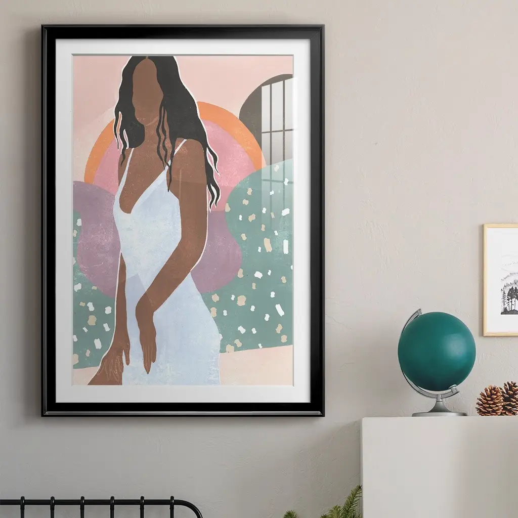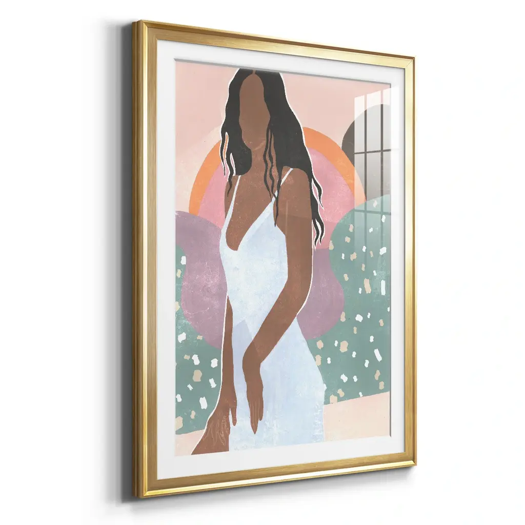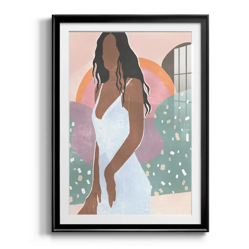 Curly Lady I Premium Framed Print - Ready to Hang A Premium Framed Print created to last. Framed in distressed wood and available in an array of sizes and colors Featuring a beveled a solid wood stretcher bar, each piece comes ready to hand 4 SIZES AVAILABLE 30.5''X42.5'' - Overall Size 26.5'X36.5'' - Overall Size 22.5''x30.5'' - Overall Size 18.5''x24.5'' - Overall Size Each piece is made to order. Each piece comes with hanging hardware. Made in the USA Ready to Hang Giclee Paper Print Acrylic Glass Beveled Matt Board