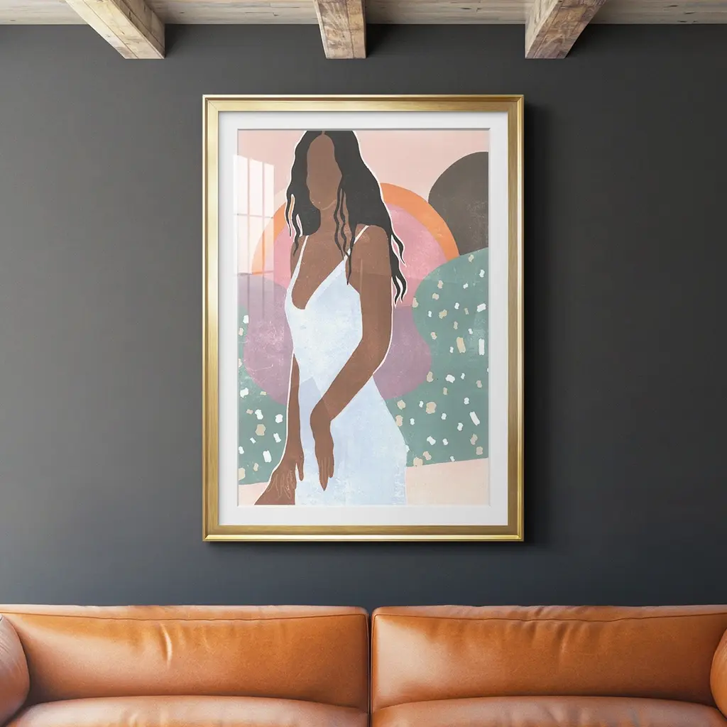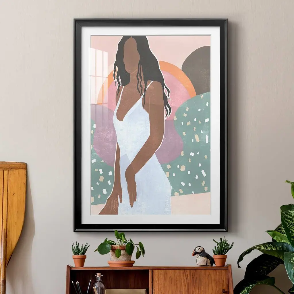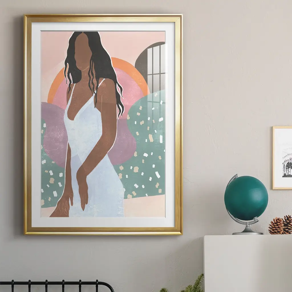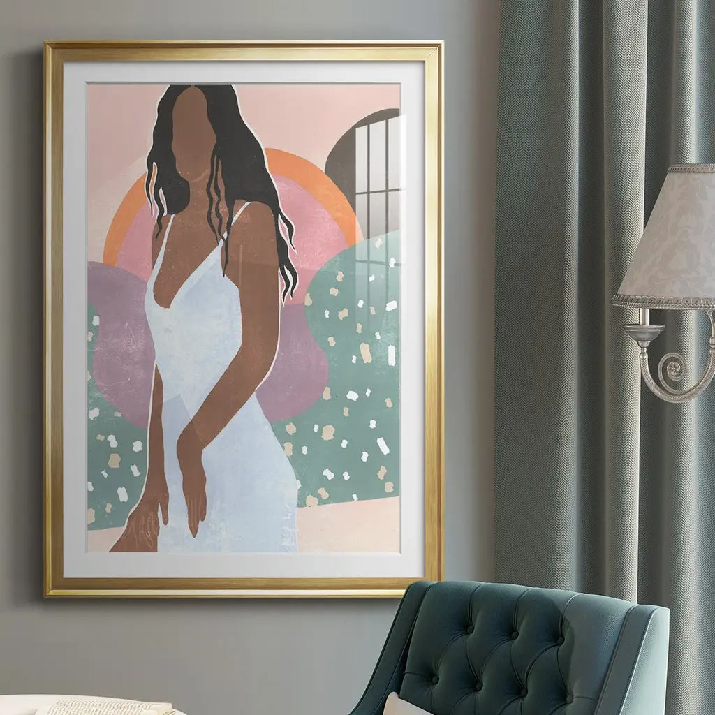Curly Lady I Premium Framed Print - Ready to Hang A Premium Framed Print created to last. Framed in distressed wood and available in an array of sizes and colors Featuring a beveled a solid wood stretcher bar, each piece comes ready to hand 4 SIZES AVAILABLE 30.5''X42.5'' - Overall Size 26.5'X36.5'' - Overall Size 22.5''x30.5'' - Overall Size 18.5''x24.5'' - Overall Size Each piece is made to order. Each piece comes with hanging hardware. Made in the USA Ready to Hang Giclee Paper Print Acrylic Glass Beveled Matt Board