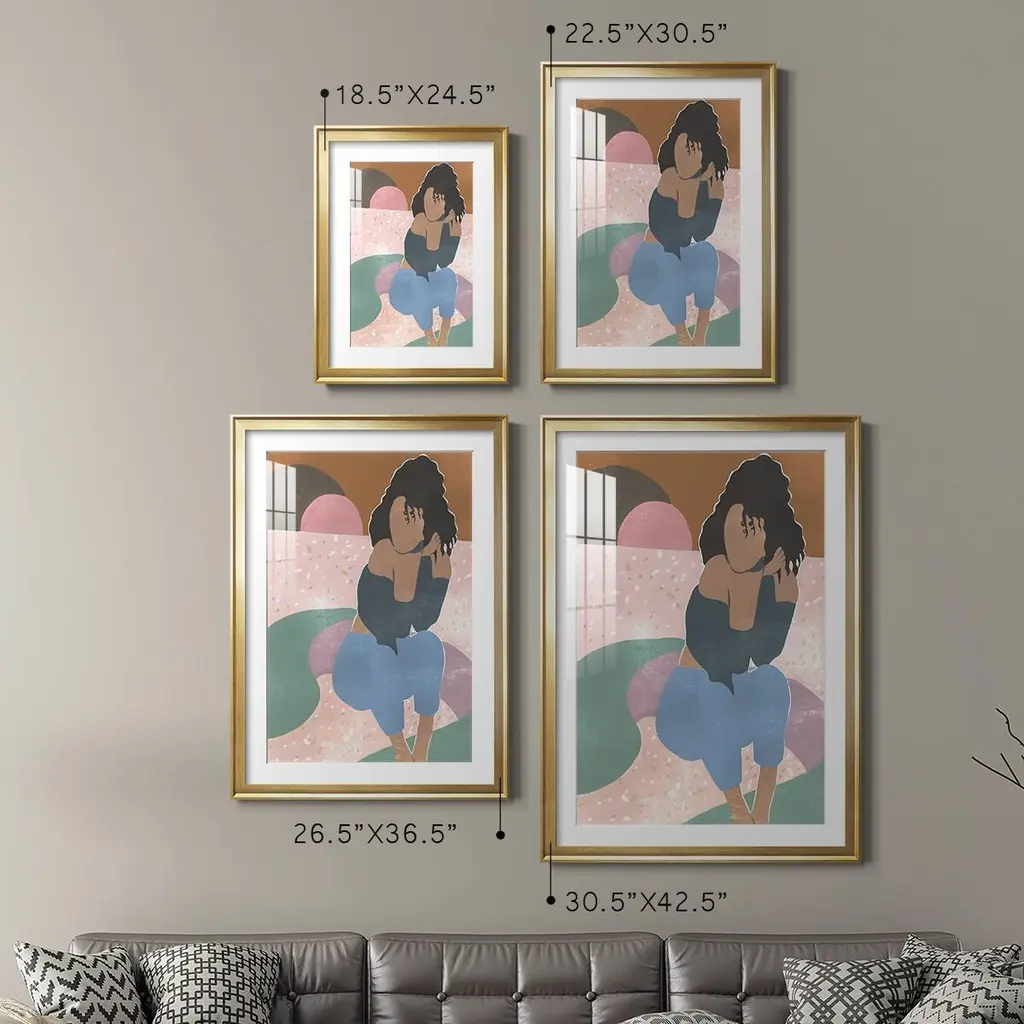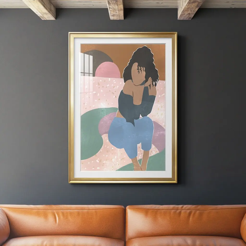 Curly Lady II Premium Framed Print - Ready to Hang A Premium Framed Print created to last. Framed in distressed wood and available in an array of sizes and colors Featuring a beveled a solid wood stretcher bar, each piece comes ready to hand 4 SIZES AVAILABLE 30.5''X42.5'' - Overall Size 26.5'X36.5'' - Overall Size 22.5''x30.5'' - Overall Size 18.5''x24.5'' - Overall Size Each piece is made to order. Each piece comes with hanging hardware. Made in the USA Ready to Hang Giclee Paper Print Acrylic Glass Beveled Matt Board