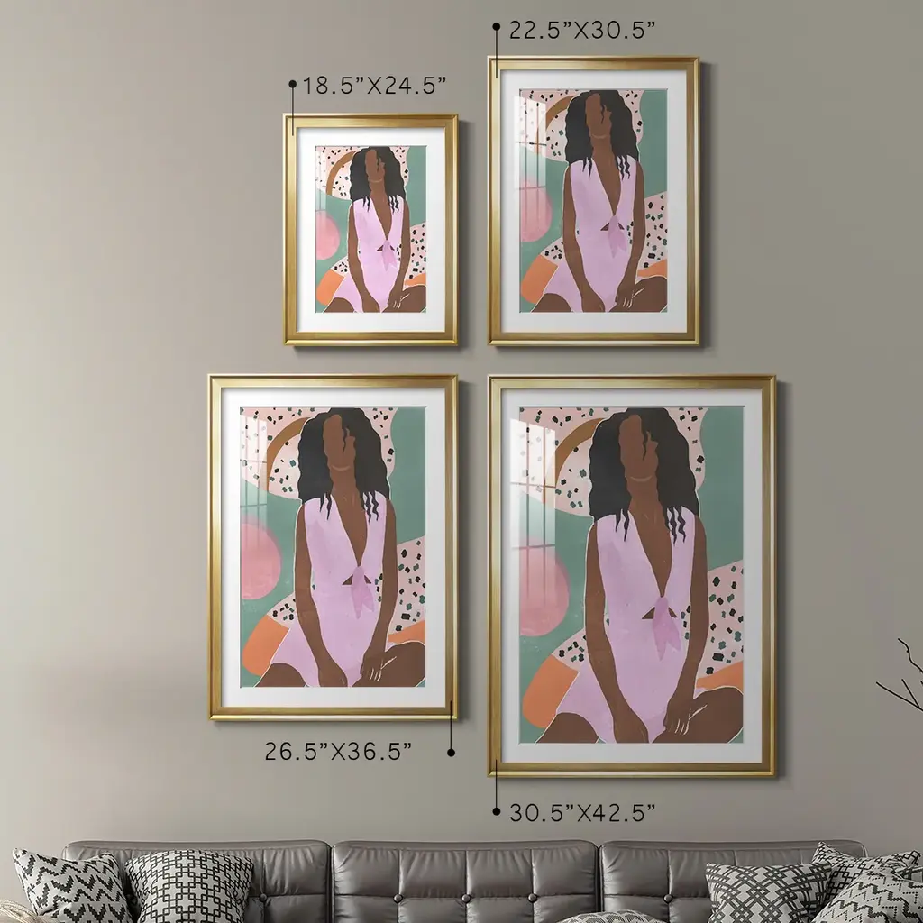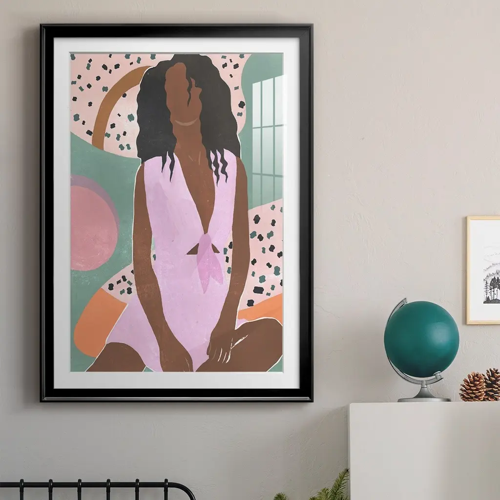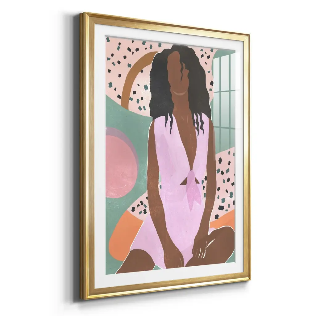 Curly Lady III Premium Framed Print - Ready to Hang A Premium Framed Print created to last. Framed in distressed wood and available in an array of sizes and colors Featuring a beveled a solid wood stretcher bar, each piece comes ready to hand 4 SIZES AVAILABLE 30.5''X42.5'' - Overall Size 26.5'X36.5'' - Overall Size 22.5''x30.5'' - Overall Size 18.5''x24.5'' - Overall Size Each piece is made to order. Each piece comes with hanging hardware. Made in the USA Ready to Hang Giclee Paper Print Acrylic Glass Beveled Matt Board