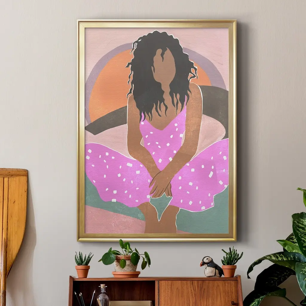 Curly Lady IV Premium Framed Print - Ready to Hang A Premium Framed Print created to last. Framed in distressed wood and available in an array of sizes and colors Featuring a beveled a solid wood stretcher bar, each piece comes ready to hand 4 SIZES AVAILABLE 30.5''X42.5'' - Overall Size 26.5'X36.5'' - Overall Size 22.5''x30.5'' - Overall Size 18.5''x24.5'' - Overall Size Each piece is made to order. Each piece comes with hanging hardware. Made in the USA Ready to Hang