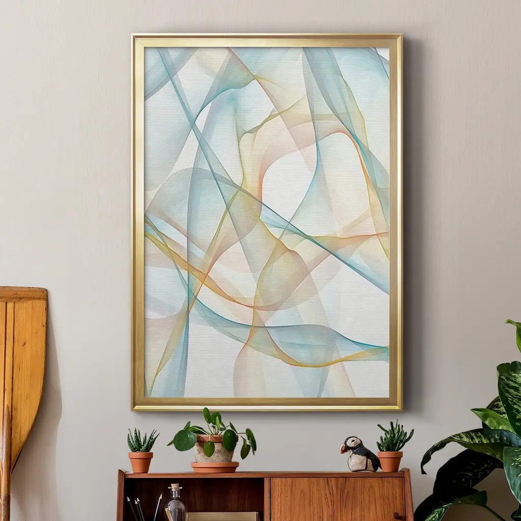 Curves and Waves III Premium Framed Print - Ready to Hang A Premium Framed Print created to last. Framed in distressed wood and available in an array of sizes and colors Featuring a beveled a solid wood stretcher bar, each piece comes ready to hand 4 SIZES AVAILABLE 30.5''X42.5'' - Overall Size 26.5'X36.5'' - Overall Size 22.5''x30.5'' - Overall Size 18.5''x24.5'' - Overall Size Each piece is made to order. Each piece comes with hanging hardware. Made in the USA Ready to Hang