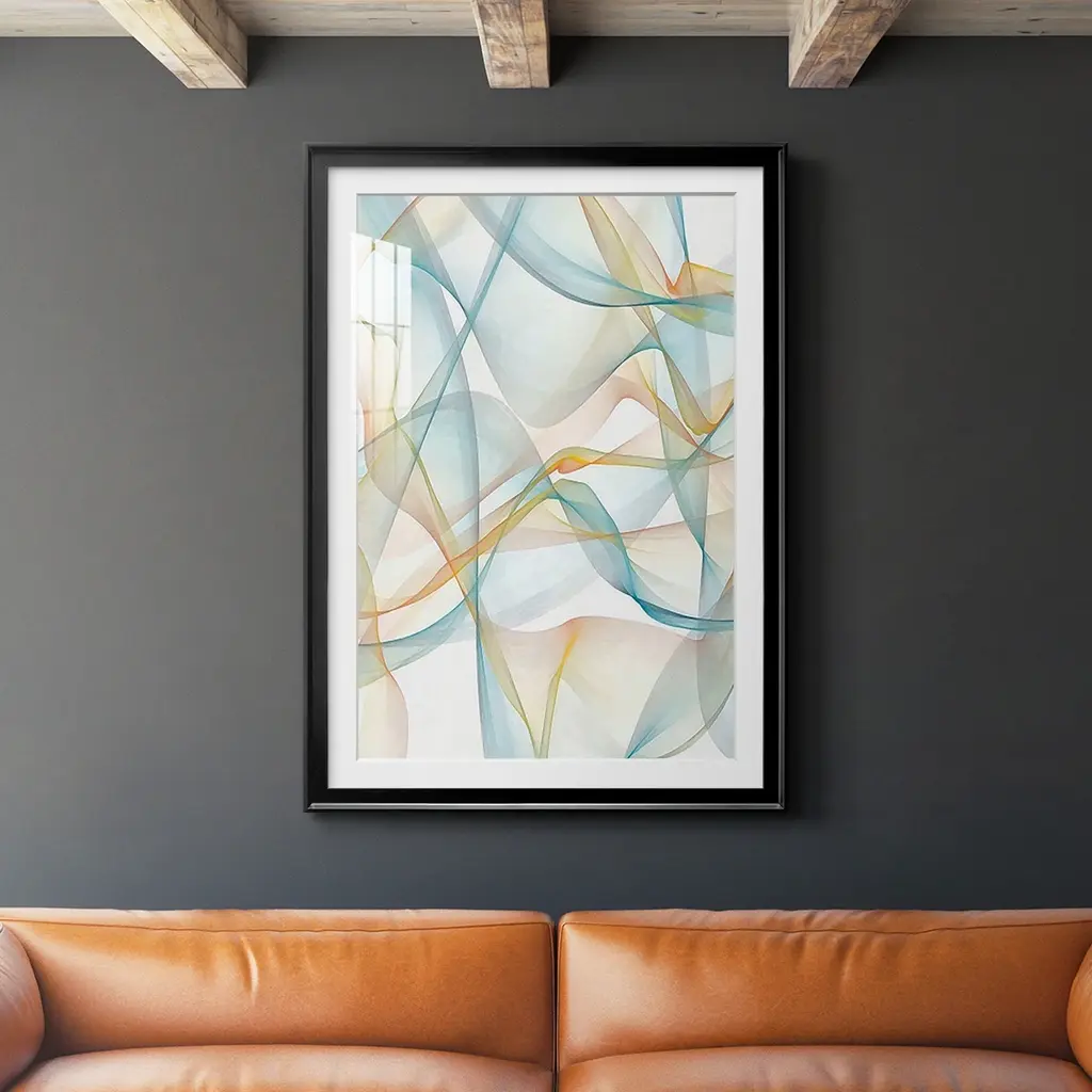 Curves and Waves IV Premium Framed Print - Ready to Hang A Premium Framed Print created to last. Framed in distressed wood and available in an array of sizes and colors Featuring a beveled a solid wood stretcher bar, each piece comes ready to hand 4 SIZES AVAILABLE 30.5''X42.5'' - Overall Size 26.5'X36.5'' - Overall Size 22.5''x30.5'' - Overall Size 18.5''x24.5'' - Overall Size Each piece is made to order. Each piece comes with hanging hardware. Made in the USA Ready to Hang Giclee Paper Print Acrylic Glass Beveled Matt Board