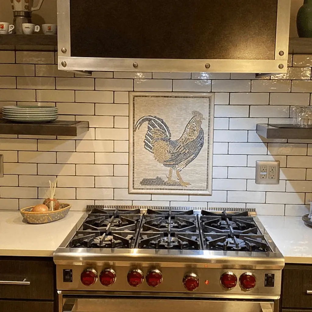 Introducing our Custom Rooster Mosaic, a masterpiece that effortlessly blends the beauty of craftsmanship with the charm of nature. This stunning mosaic art piece features an intricately designed rooster, capturing its vibrant spirit and personality through delicate artistry. Each Custom Rooster Mosaic is carefully created using a harmonious palette of soft earth tones, which not only brings authenticity to the artwork but also ensures that it complements a wide range of decor styles.What sets our Custom Rooster Mosaic apart is the meticulous hand-cutting technique employed by our skilled artisans. Every tile is cut and placed with precision, giving life to this magnificent bird in a way that mass-produced art simply cannot replicate. The result is a one-of-a-kind piece that you can proudly display in your home, garden, or office, adding a touch of rustic elegance wherever it is placed.Designed to stand the test of time, this Custom Rooster Mosaic is more than just a decorative item; it's a long-lasting piece of art that will bring joy and inspiration for years to come. Whether you are an art lover, a rooster enthusiast, or simply looking for a unique gift, this mosaic is sure to delight. Enhance your space with the beauty of our Custom Rooster Mosaic—where tradition meets artistic innovation. Order yours today and bring a slice of handcrafted elegance into your life!