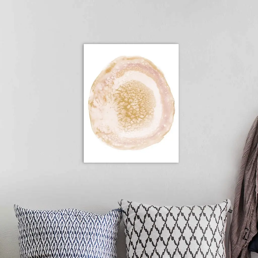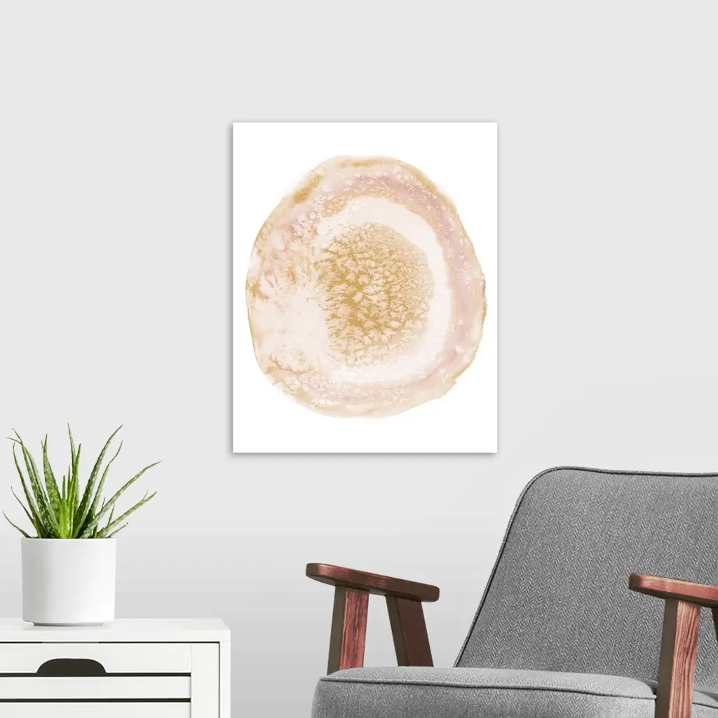 Contemporary abstract watercolor painting of a pastel pink geode against a white background.
