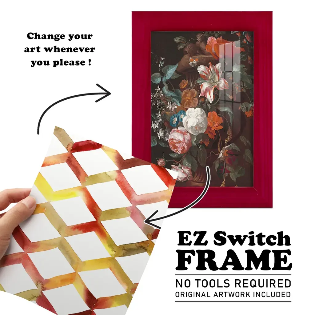 Custom Shades of Blue I -EZ SWITCH Framed Print w/glass-Cherry Red A delightful, framed print. Featuring a solid wood frame with real wood glass. This premium print is giclee quality. In addition, every frame features a removable back and table top stand. This allows you to change your art in the future or to just stand the art on a table for a new look. We are sure you'll enjoy our new series of EZ SWITCH Framed Art. Solid Wood Frame Real Glass Removable / Replaceable Art Built in Tabletop Stand Sizes range from 4x6 up to 12x15 - buy just one or pair them up as sets as you see fit.