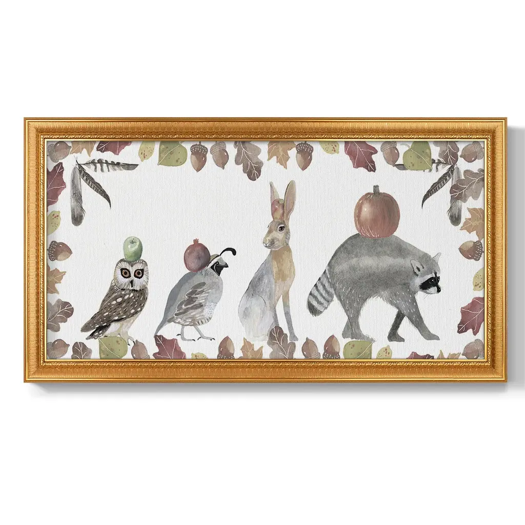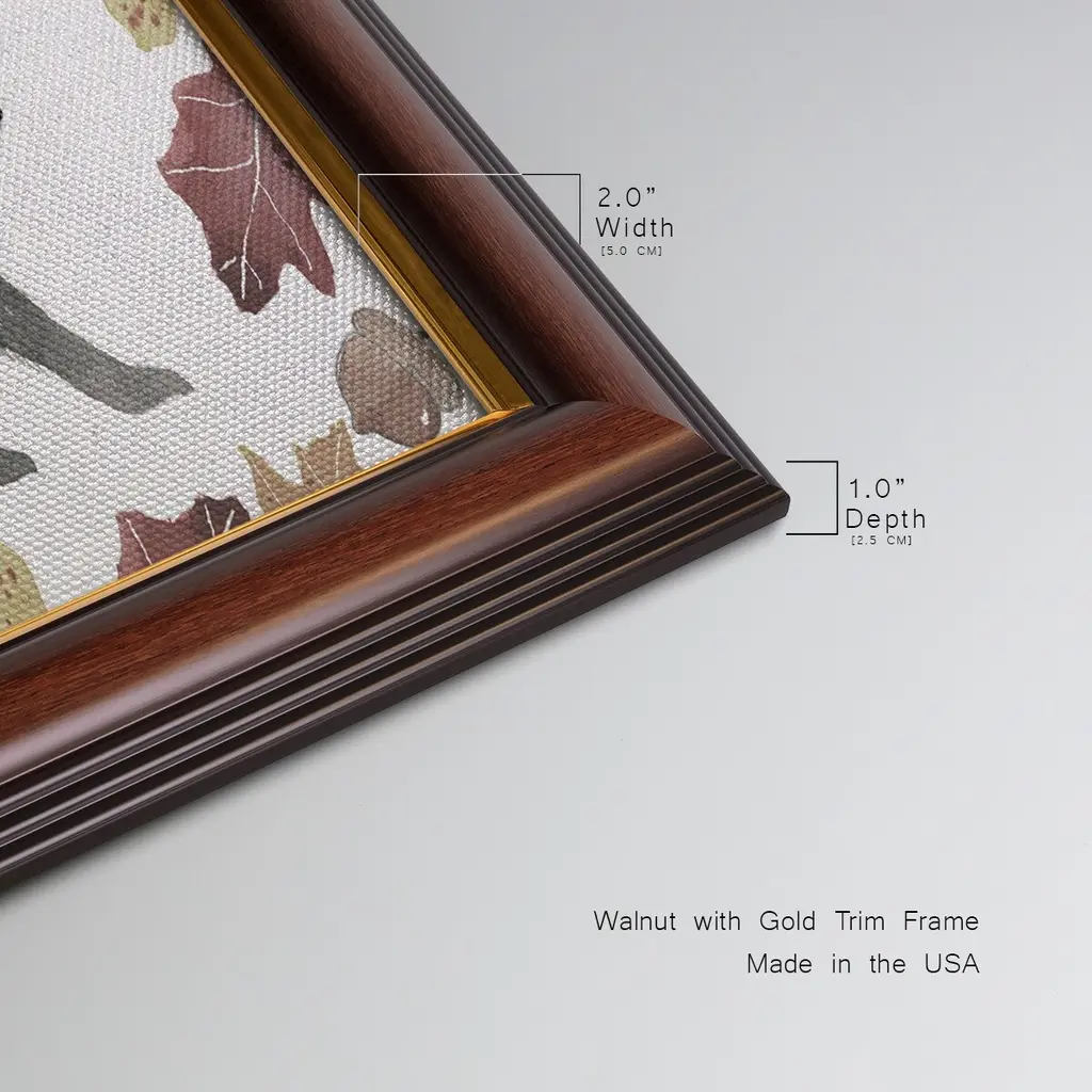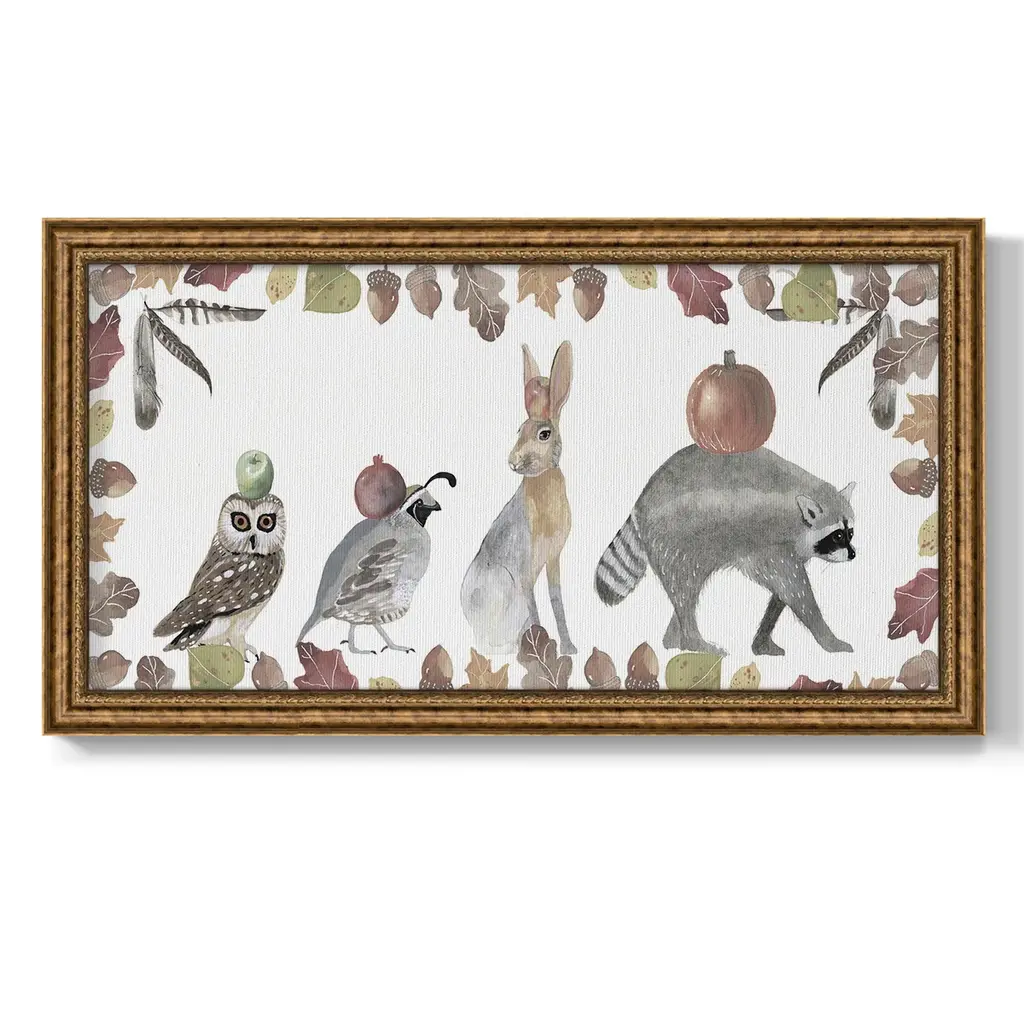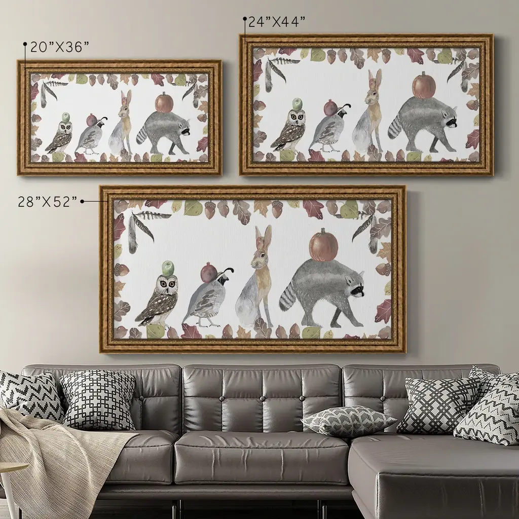 Cute Autumn Forest Collection D Premium Framed Canvas- Ready to Hang A Premium Framed Canvas created to last. Framed in distressed wood and available in an array of sizes and colors Featuring a beveled a solid wood stretcher bar, each piece comes ready to hand 3 SIZES AVAILABLE 21''X37'' - Overall Size 25''X45'' - Overall Size 29''x53'' - Overall Size Each piece is made to order. Each piece comes with hanging hardware. Made in the USA Ready to Hang Giclee Paper Print Acrylic Glass Beveled Matt Board