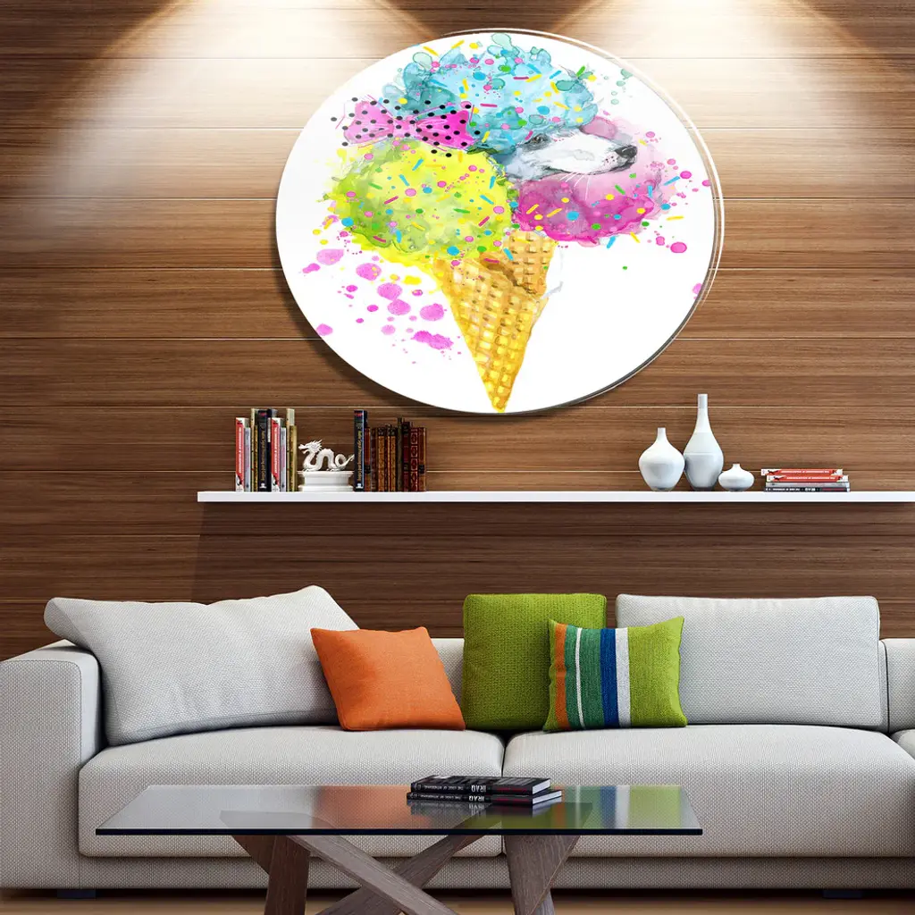 Bring Contemporary Abstraction to your home with this large Circle Metal wall art. This Cute Colorful Puppy Dog Metal Artwork makes it the focal point of any room or office. - White Gloss Coating ensures colors are extra vibrant with light reflection.- Aluminum grade Sheet Metal with 1 inch mounting frame on the back giving the illusion that the artwork is floating on the wall..- Mounting Brackets are included along with instructions.- High Quality Digital images are created directly into a glossy aluminum panel producing a stunning and captivating print into the glossy finish of the metal.- Water, Fire and Scratch resistant HD Aluminum panels.- Looks better than any photo paper and guaranteed to last at least 20 years- Easy to clean with a microfiber cloth. Colors are far superior to regular Canvas Art. - Easy to Hang