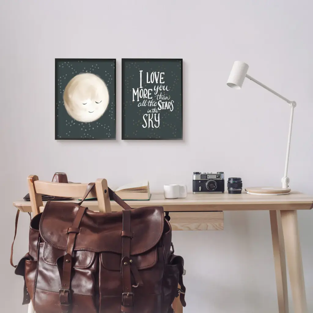 Cute Moon Starry Night Sky I Love You Phrase, 2Pc, Each 11 X 14