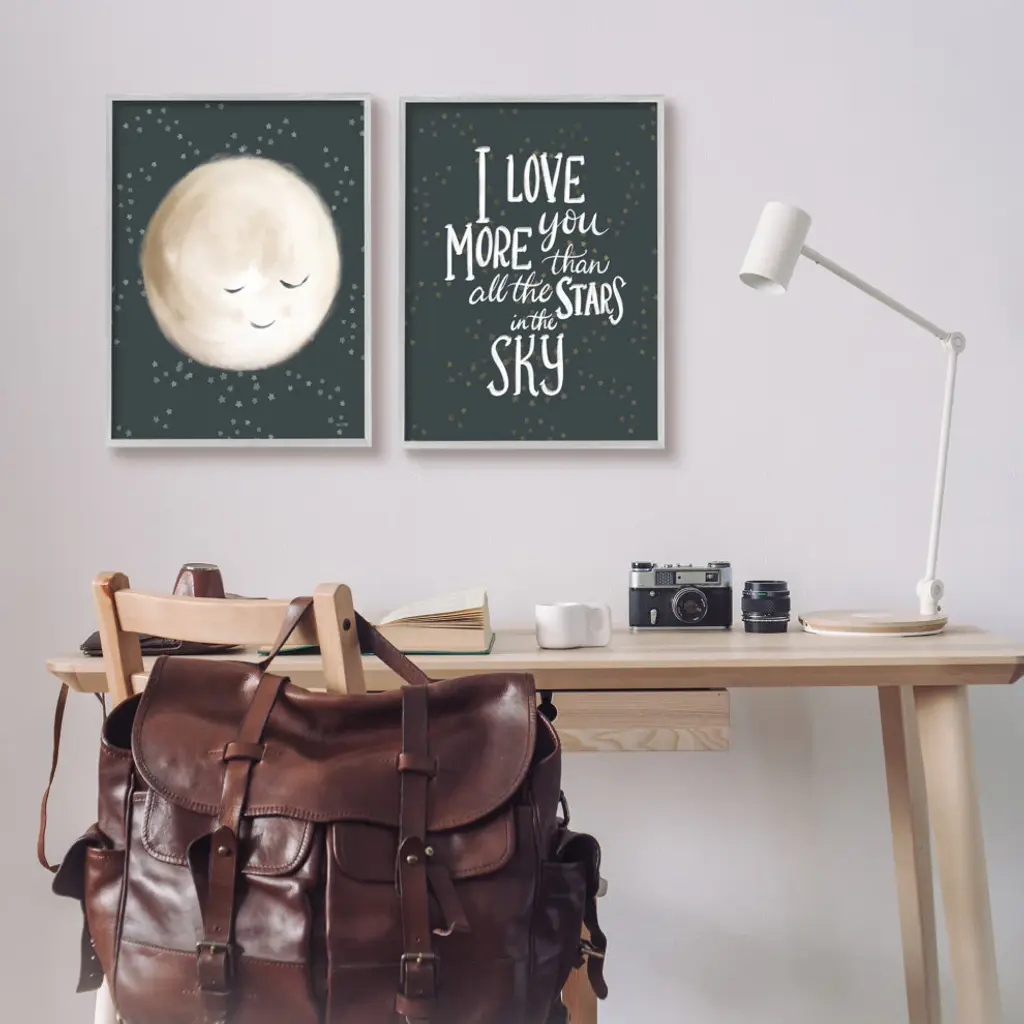 Cute Moon Starry Night Sky I Love You Phrase, 2Pc, Each 16 X 20