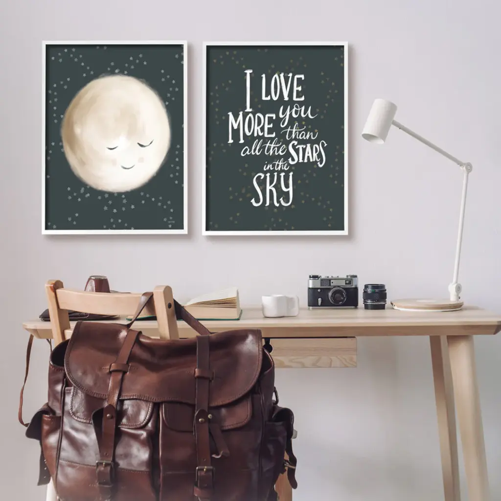 Cute Moon Starry Night Sky I Love You Phrase, 2Pc, Each 24 X 30