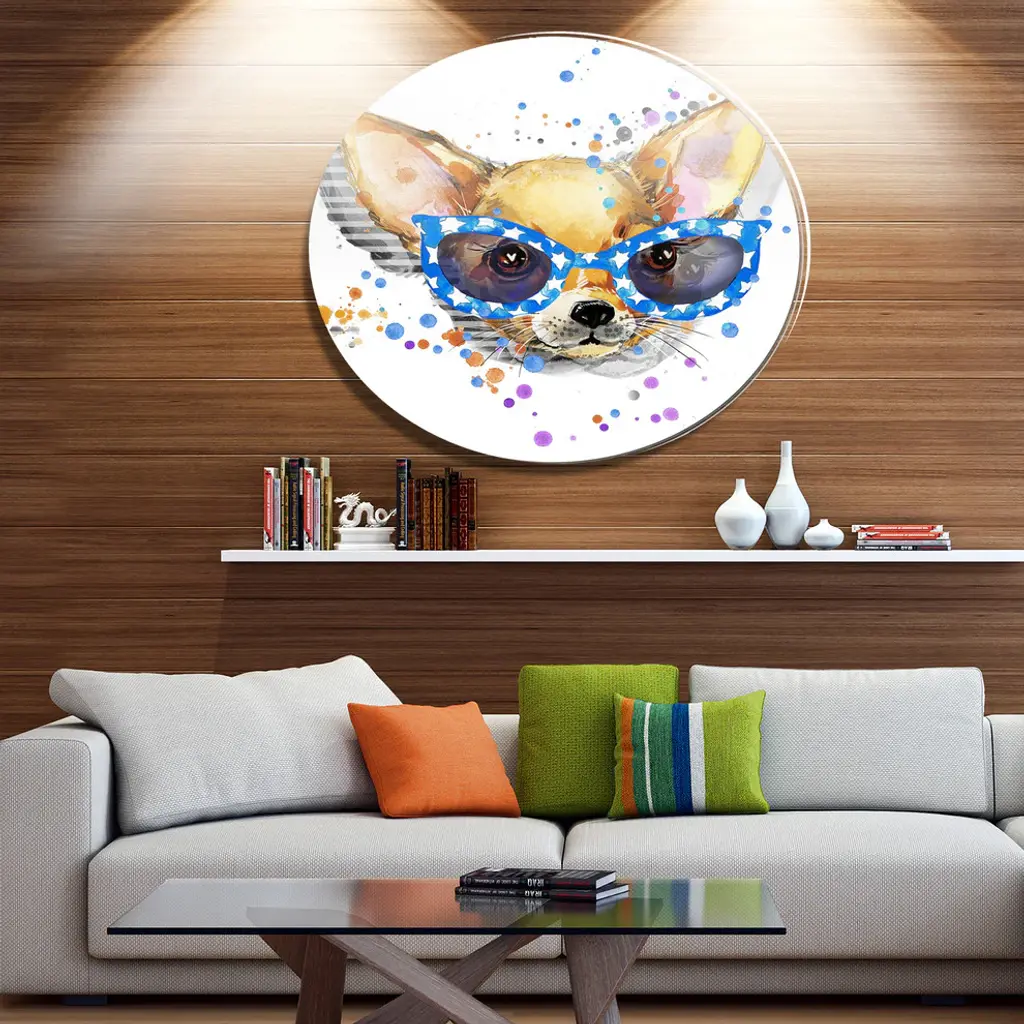 Cute Puppy With Blue Glasses, Animal Disc Metal Wall Art, 36"