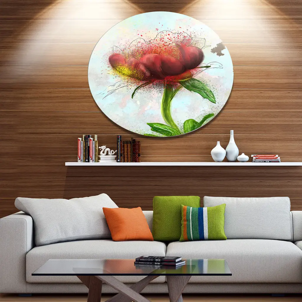 Bring Contemporary Abstraction to your home with this large Circle Metal wall art. This Cute Red Green Watercolor Flower Metal Artwork makes it the focal point of any room or office. - White Gloss Coating ensures colors are extra vibrant with light reflection.- Aluminum grade Sheet Metal with 1 inch mounting frame on the back giving the illusion that the artwork is floating on the wall..- Mounting Brackets are included along with instructions.- High Quality Digital images are created directly into a glossy aluminum panel producing a stunning and captivating print into the glossy finish of the metal.- Water, Fire and Scratch resistant HD Aluminum panels.- Looks better than any photo paper and guaranteed to last at least 20 years- Easy to clean with a microfiber cloth. Colors are far superior to regular Canvas Art. - Easy to Hang
