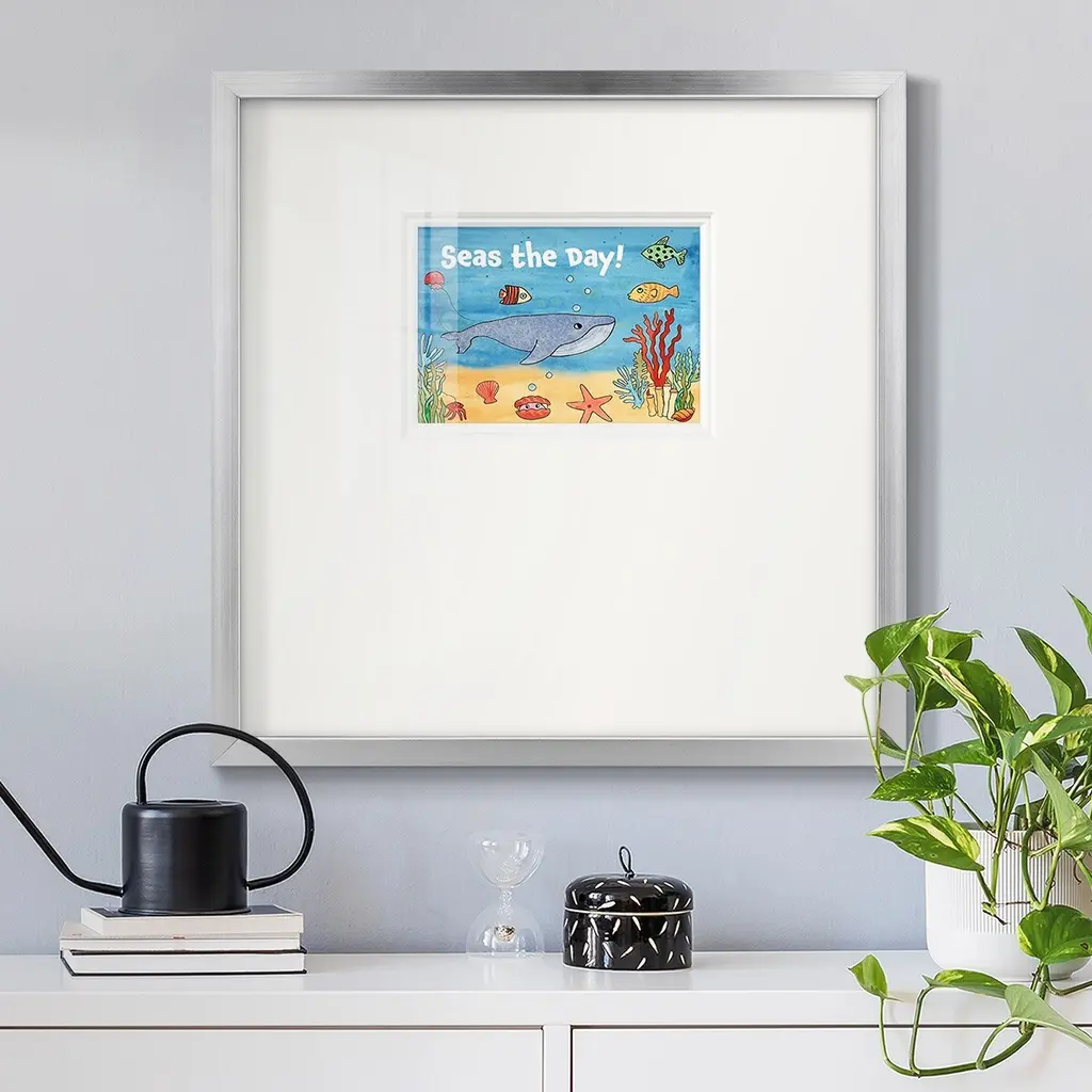 Cute Sea Creatures IIPremium Framed Print A framed cold pressed paper print featuring superior double matting and quality frame. 2 SIZES AVAILABLE 16''X16''' - Overall Size 20''X20''' - Overall Size Each piece is made to order. Each piece comes with hanging hardware. Made in the USA Ready to Hang Giclee Paper Print Plexiglass Beveled Matt Board Double Matte Board