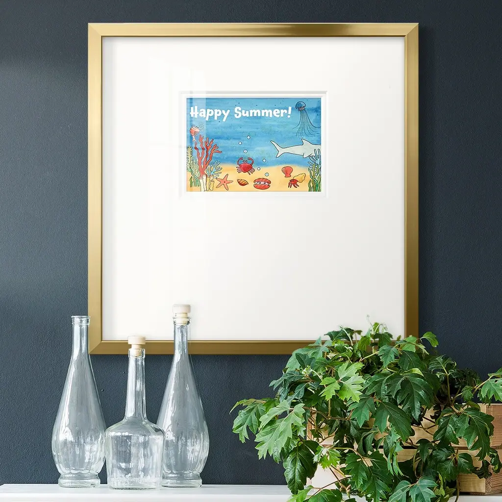 Cute Sea Creatures IIPremium Framed Print A framed cold pressed paper print featuring superior double matting and quality frame. 2 SIZES AVAILABLE 16''X16''' - Overall Size 20''X20''' - Overall Size Each piece is made to order. Each piece comes with hanging hardware. Made in the USA Ready to Hang Giclee Paper Print Plexiglass Beveled Matt Board Double Matte Board