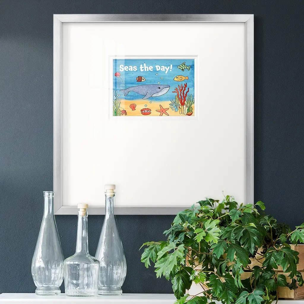 Cute Sea Creatures IIPremium Framed Print A framed cold pressed paper print featuring superior double matting and quality frame. 2 SIZES AVAILABLE 16''X16''' - Overall Size 20''X20''' - Overall Size Each piece is made to order. Each piece comes with hanging hardware. Made in the USA Ready to Hang Giclee Paper Print Plexiglass Beveled Matt Board Double Matte Board