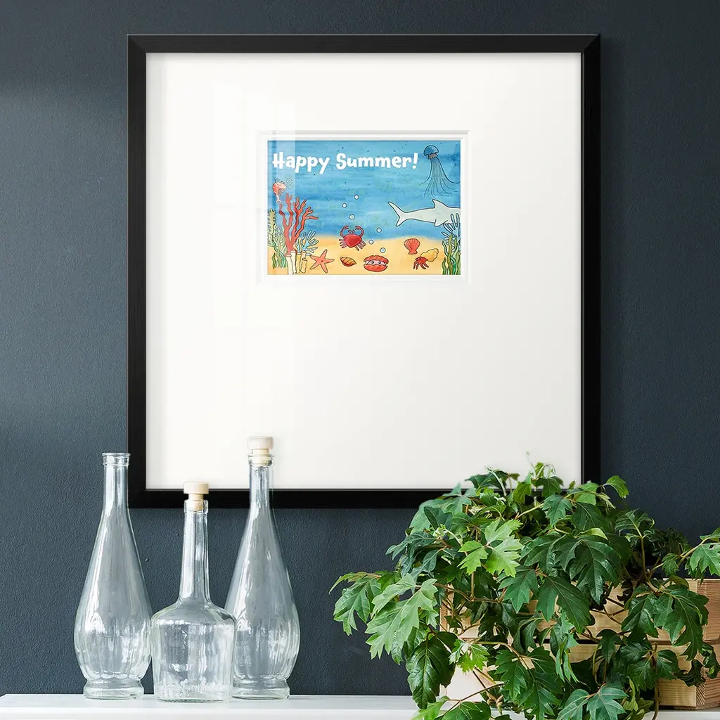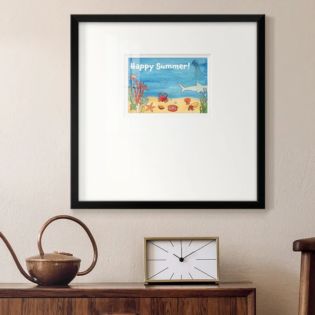 Cute Sea Creatures IPremium Framed Print A framed cold pressed paper print featuring superior double matting and quality frame. 2 SIZES AVAILABLE 16''X16''' - Overall Size 20''X20''' - Overall Size Each piece is made to order. Each piece comes with hanging hardware. Made in the USA Ready to Hang Giclee Paper Print Plexiglass Beveled Matt Board Double Matte Board
